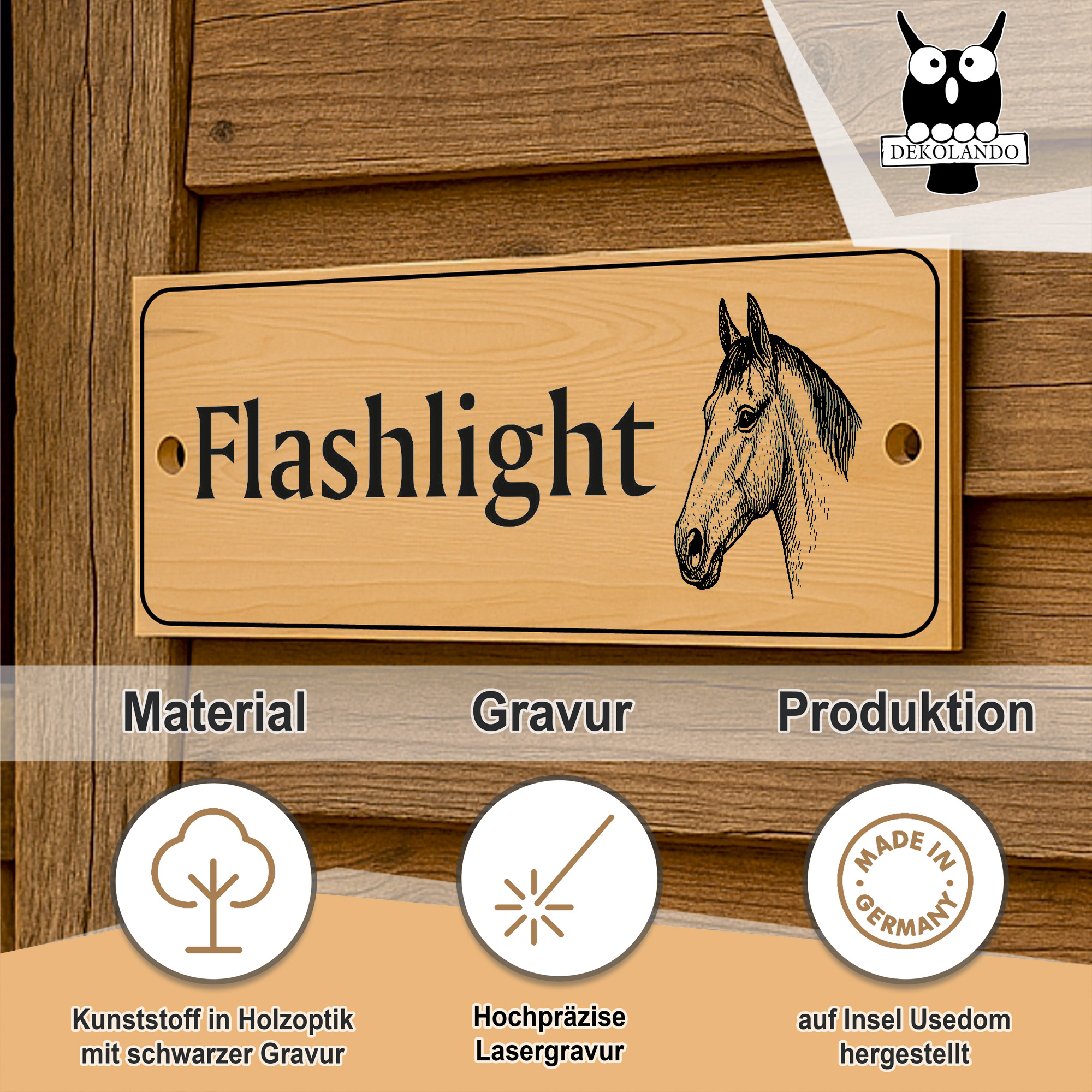 - Personalisiertes Stallschild mit Pferdekopf – Hochwertiges Schild im Querformat (20×7,5 cm) mit individueller Beschriftung in bis zu 3 Zeilen. Ideal als Namensschild für Pferdebox, Stall oder Paddock.