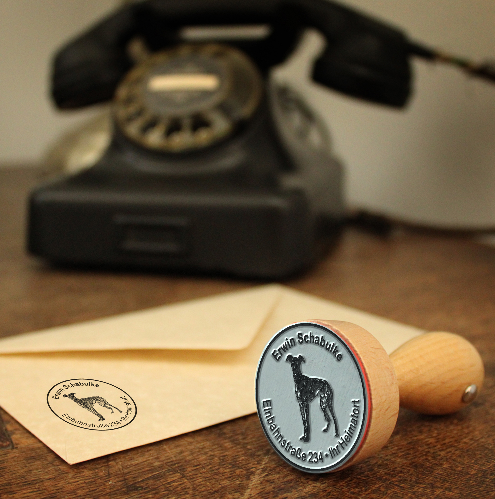 Stempel Adressstempel Holzstempel - Galgo Español - rund 40mm