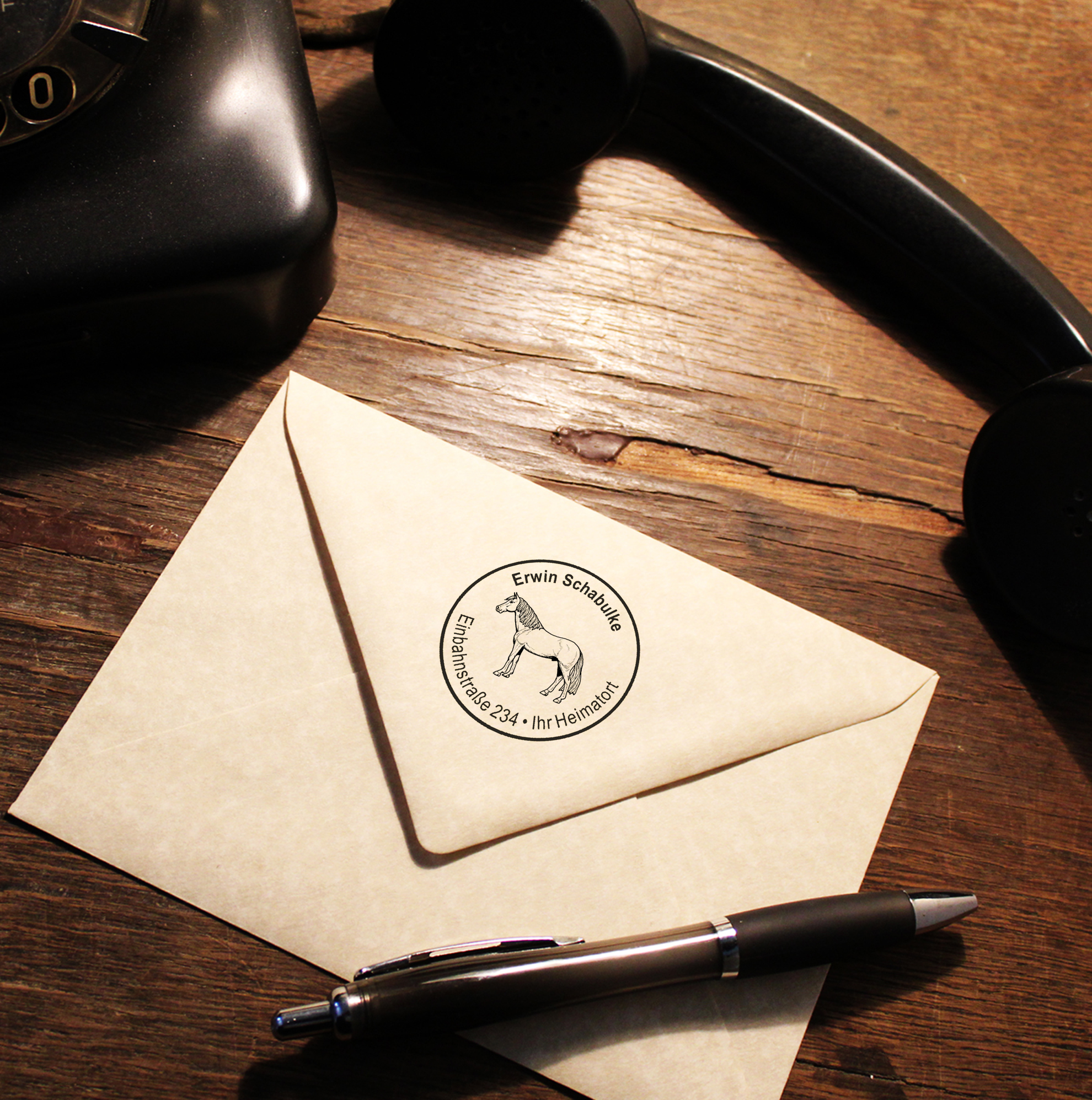 Stempel Adressstempel Holzstempel - Hannoveraner Pferd - rund 40mm