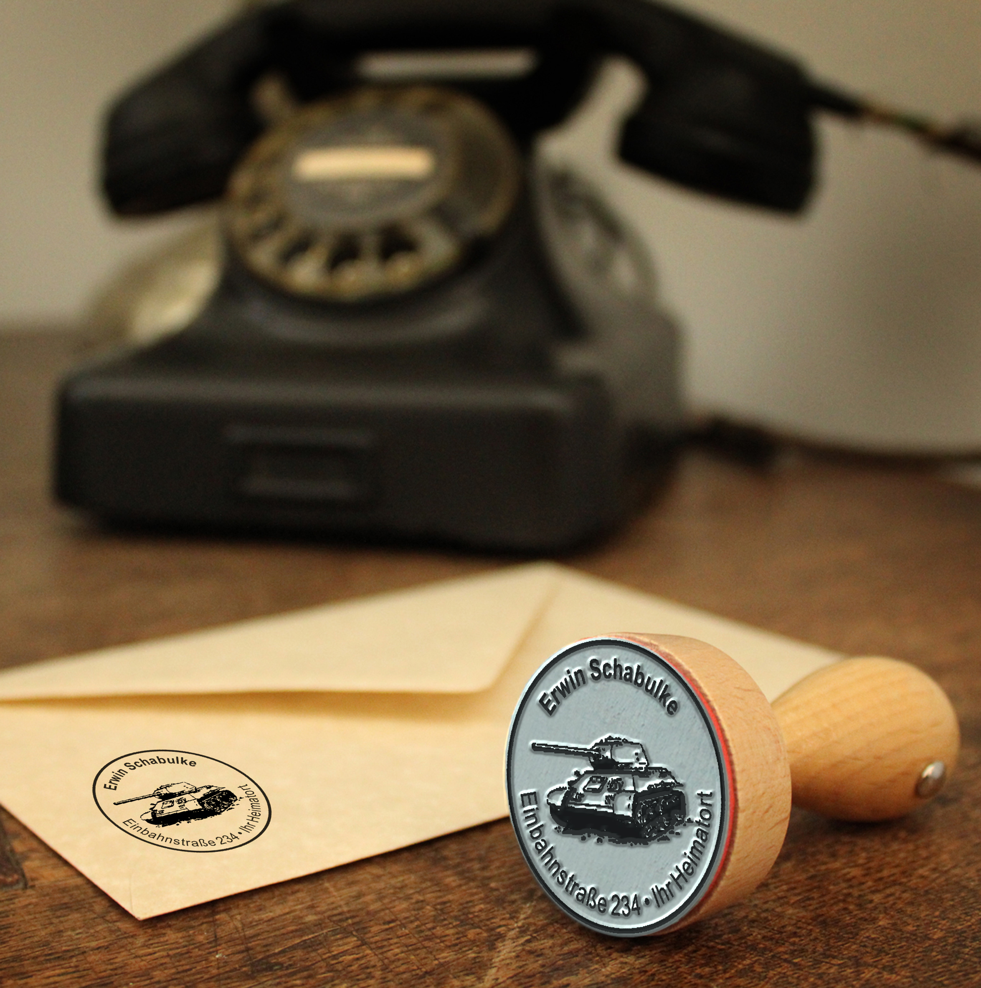 Stempel Adressstempel Holzstempel - Panzer - rund 40mm