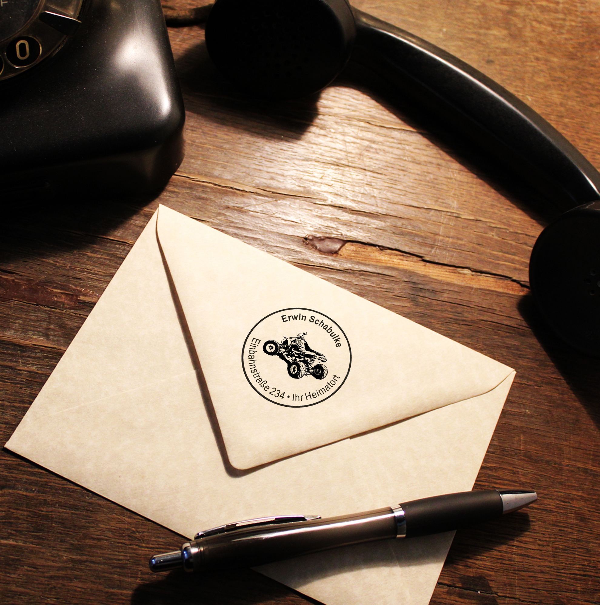 Stempel Adressstempel Holzstempel - Quad - rund 40mm