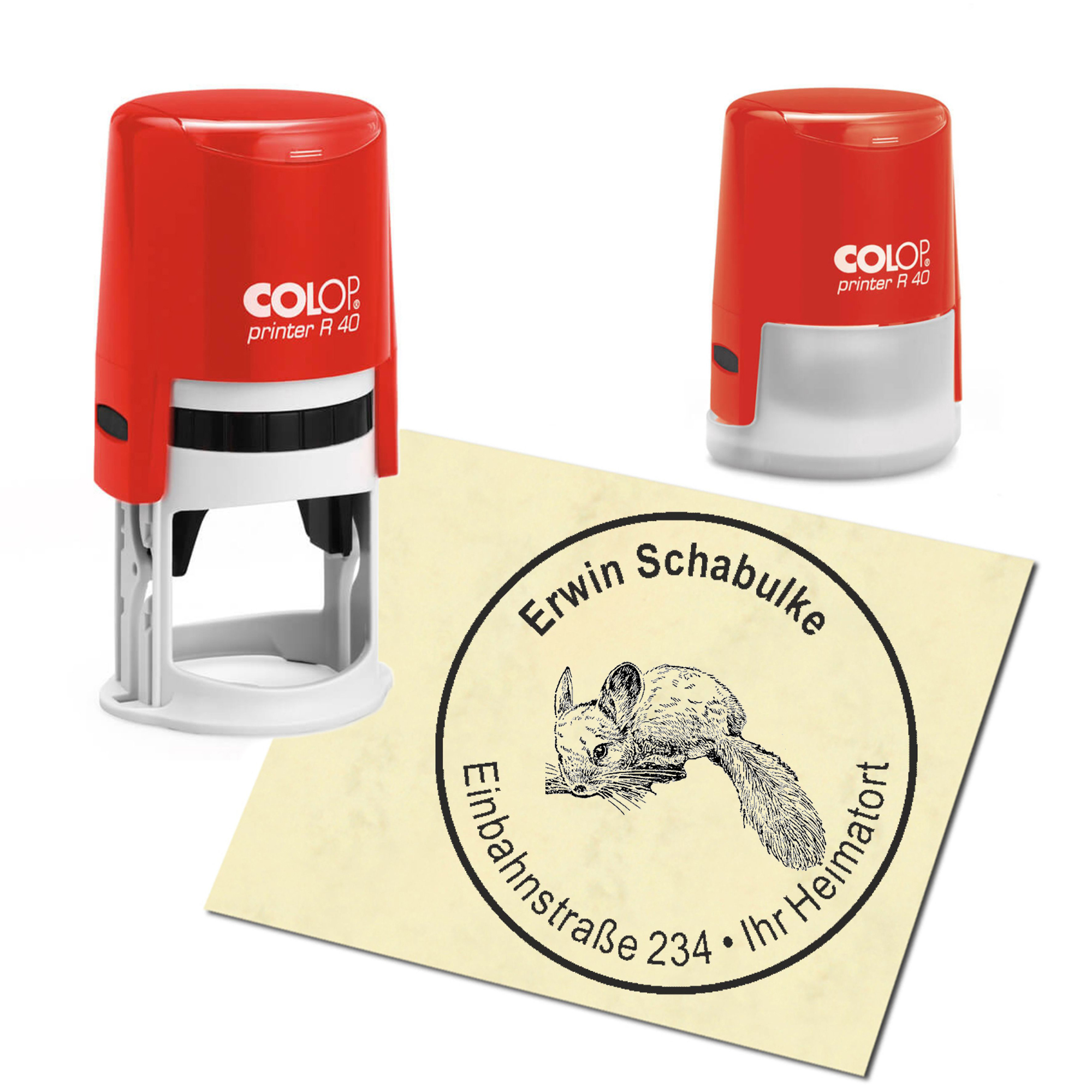 Stempel Adressstempel personalisiert - Chinchilla - rund ∅ 40mm