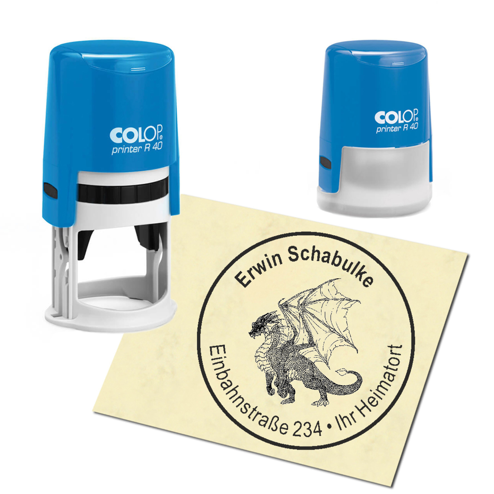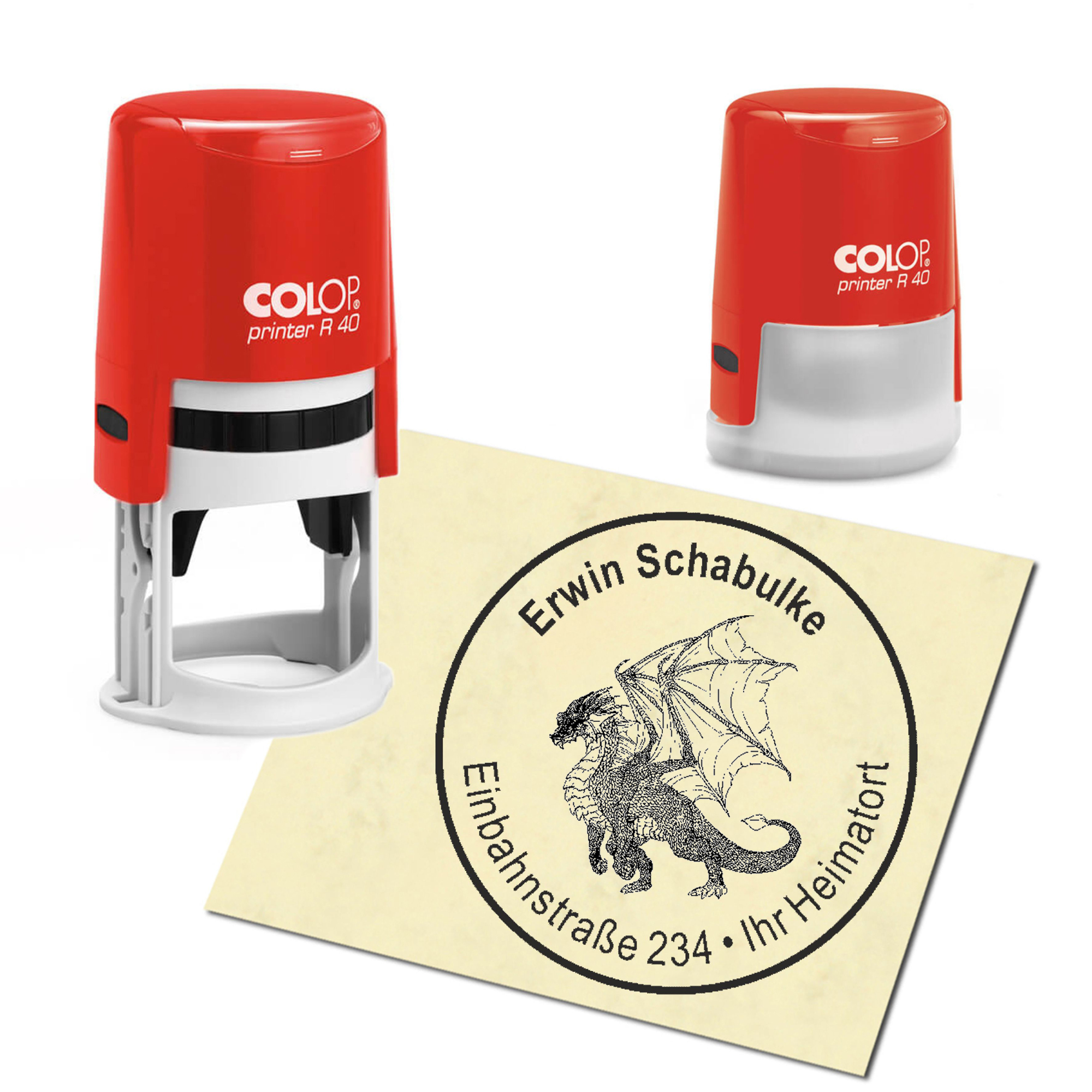 Produktinformationen "Stempel Adressstempel personalisiert - Drache - rund ∅ 40mm"