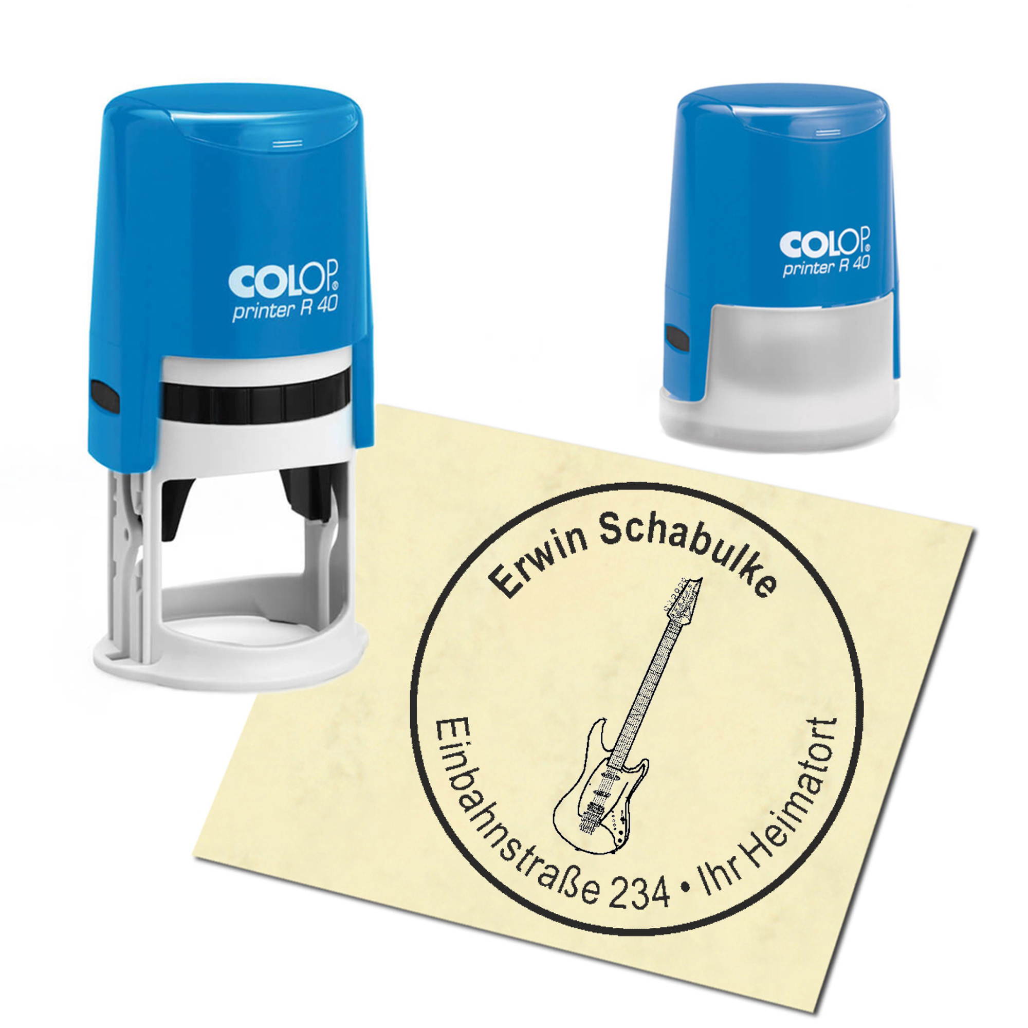 Stempel Adressstempel personalisiert - E-Gitarre - rund ∅ 40mm