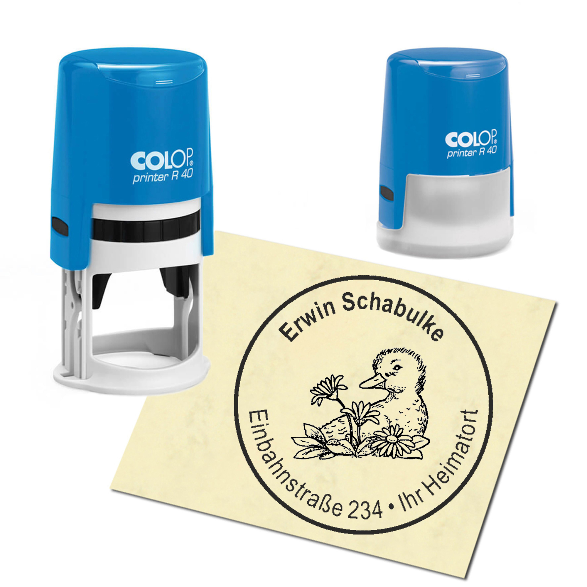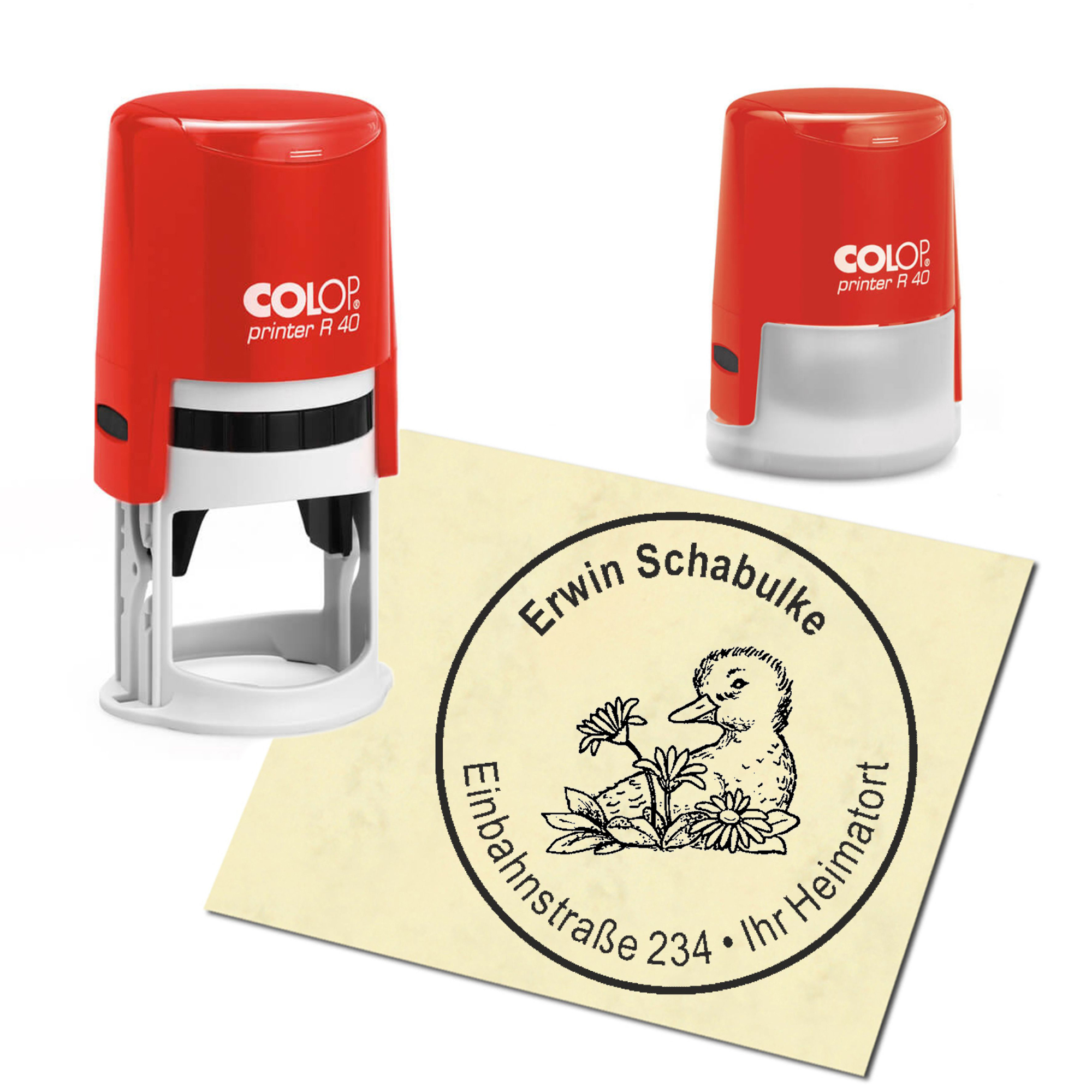 Stempel Adressstempel personalisiert - Ente mit Blume - rund ∅ 40mm