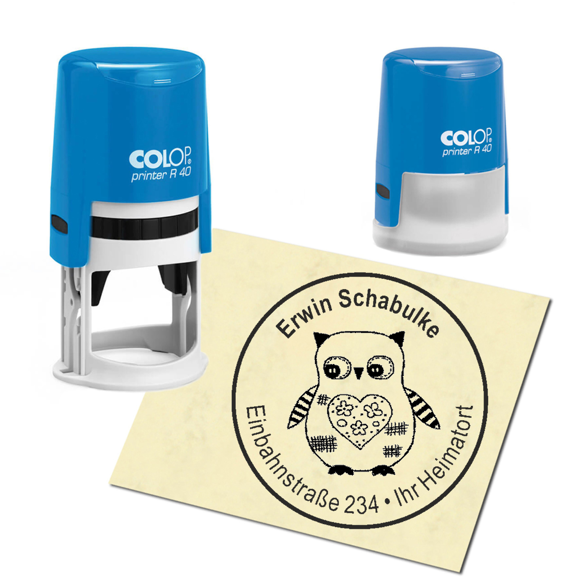 Produktinformationen "Stempel Adressstempel personalisiert - Eule Vintage - rund ∅ 40mm"