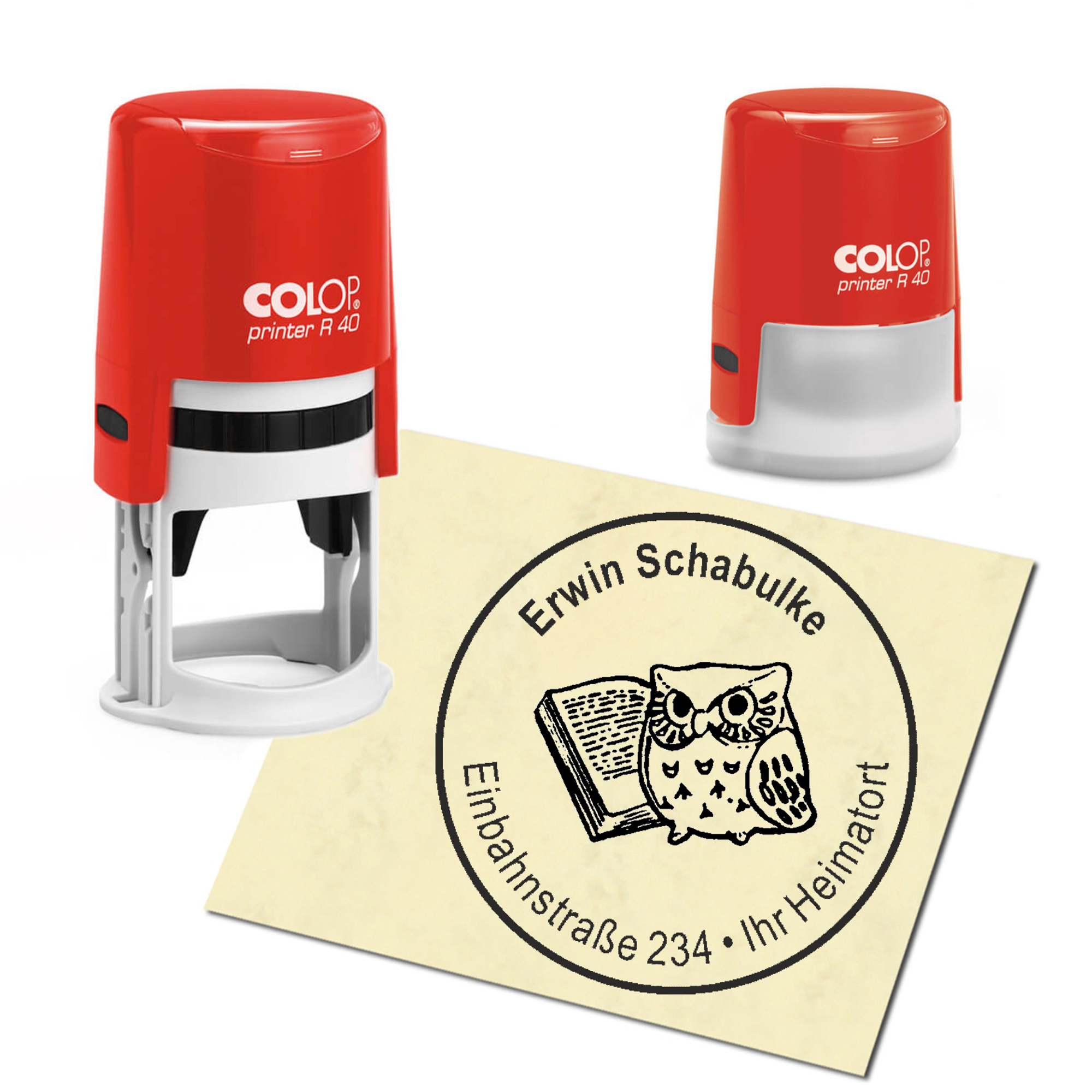 Stempel Adressstempel personalisiert - Eule und Buch - rund ∅ 40mm