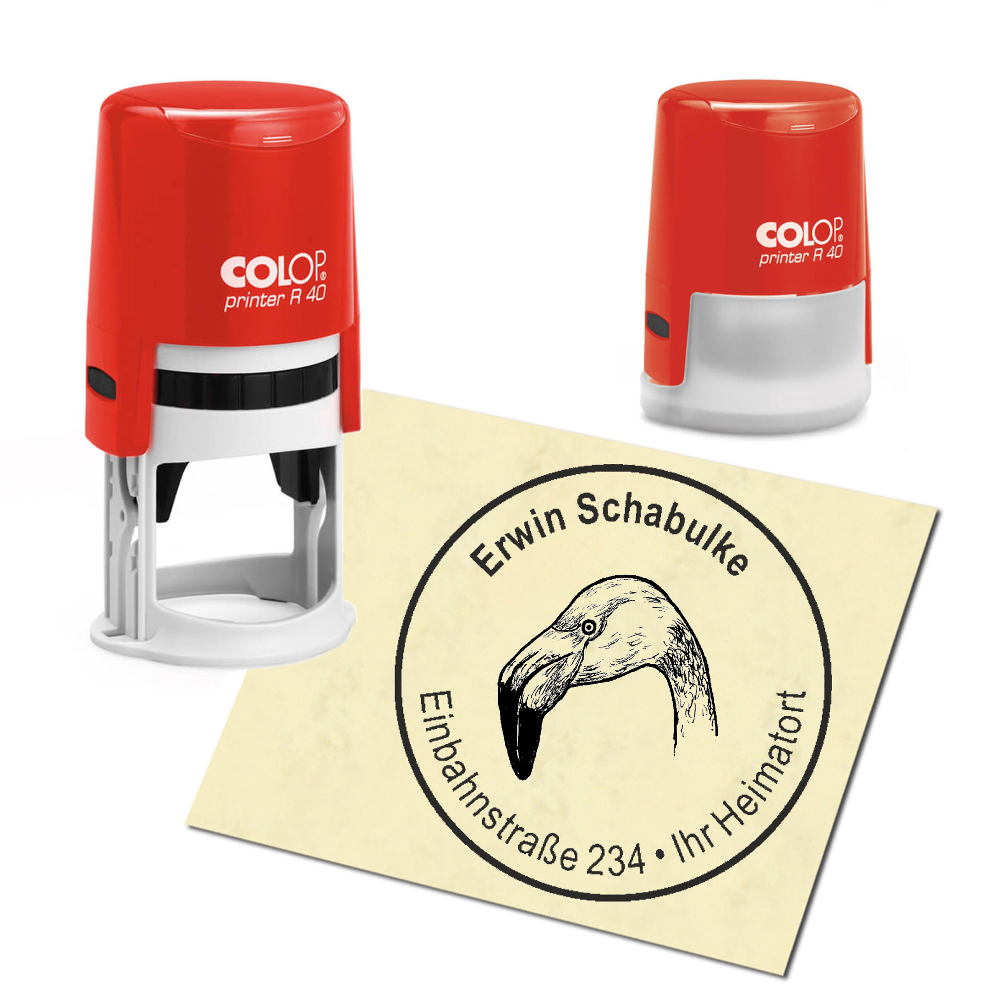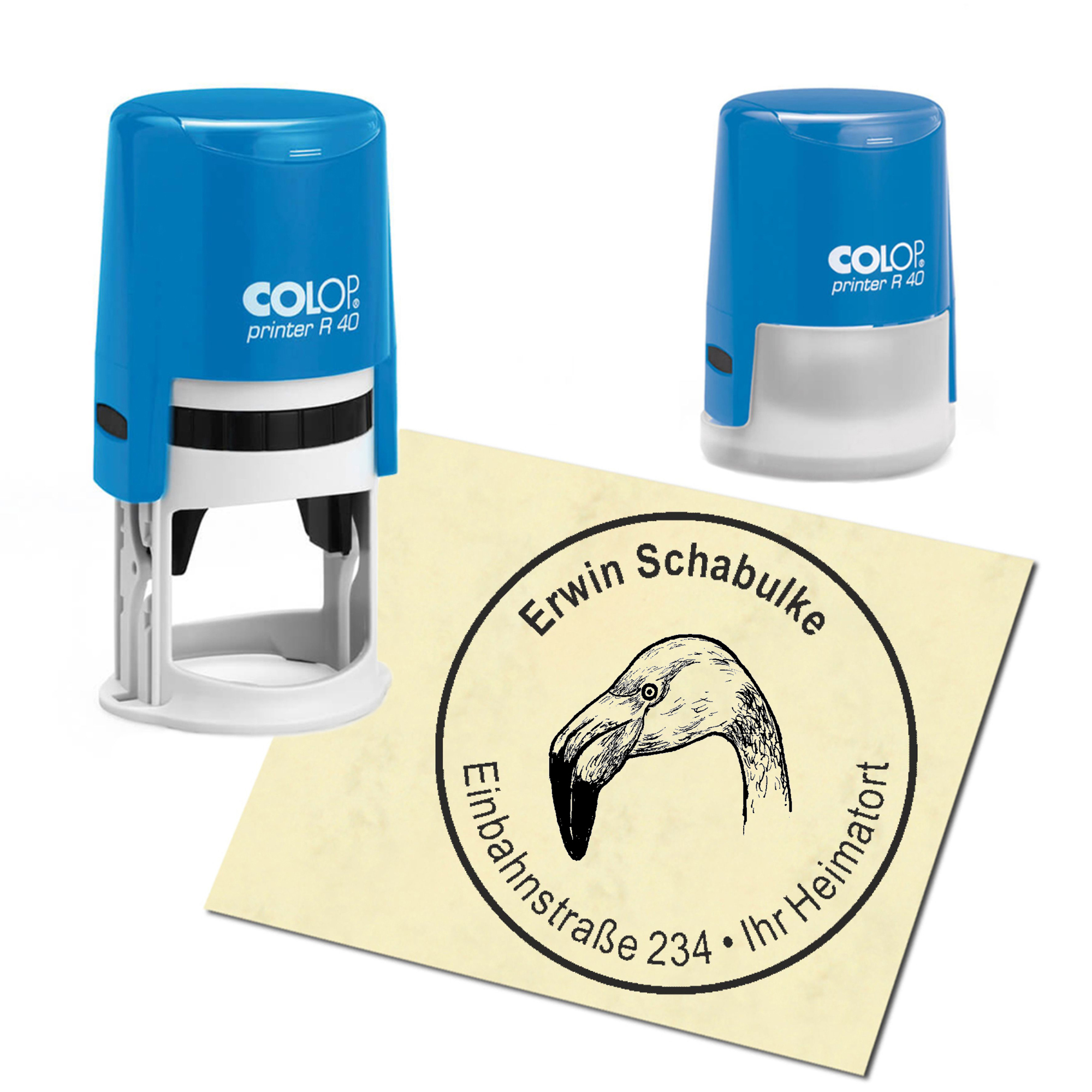 Stempel Adressstempel personalisiert - Flamingo Kopf - rund ∅ 40mm