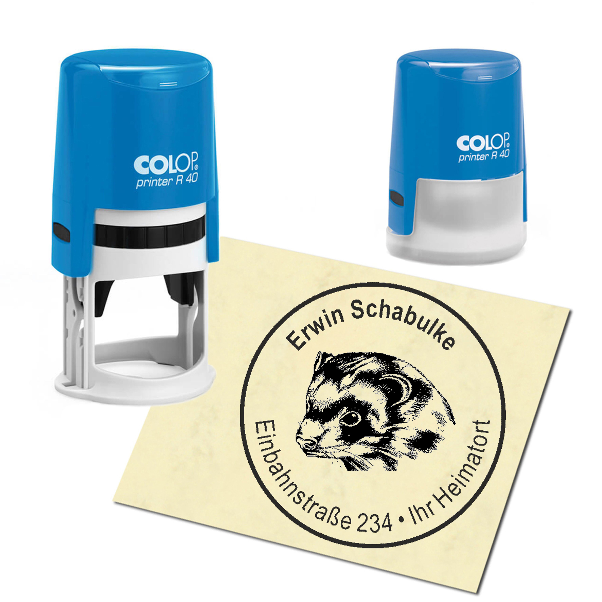 Produktinformationen "Stempel Adressstempel personalisiert - Frettchen - rund ∅ 40mm"