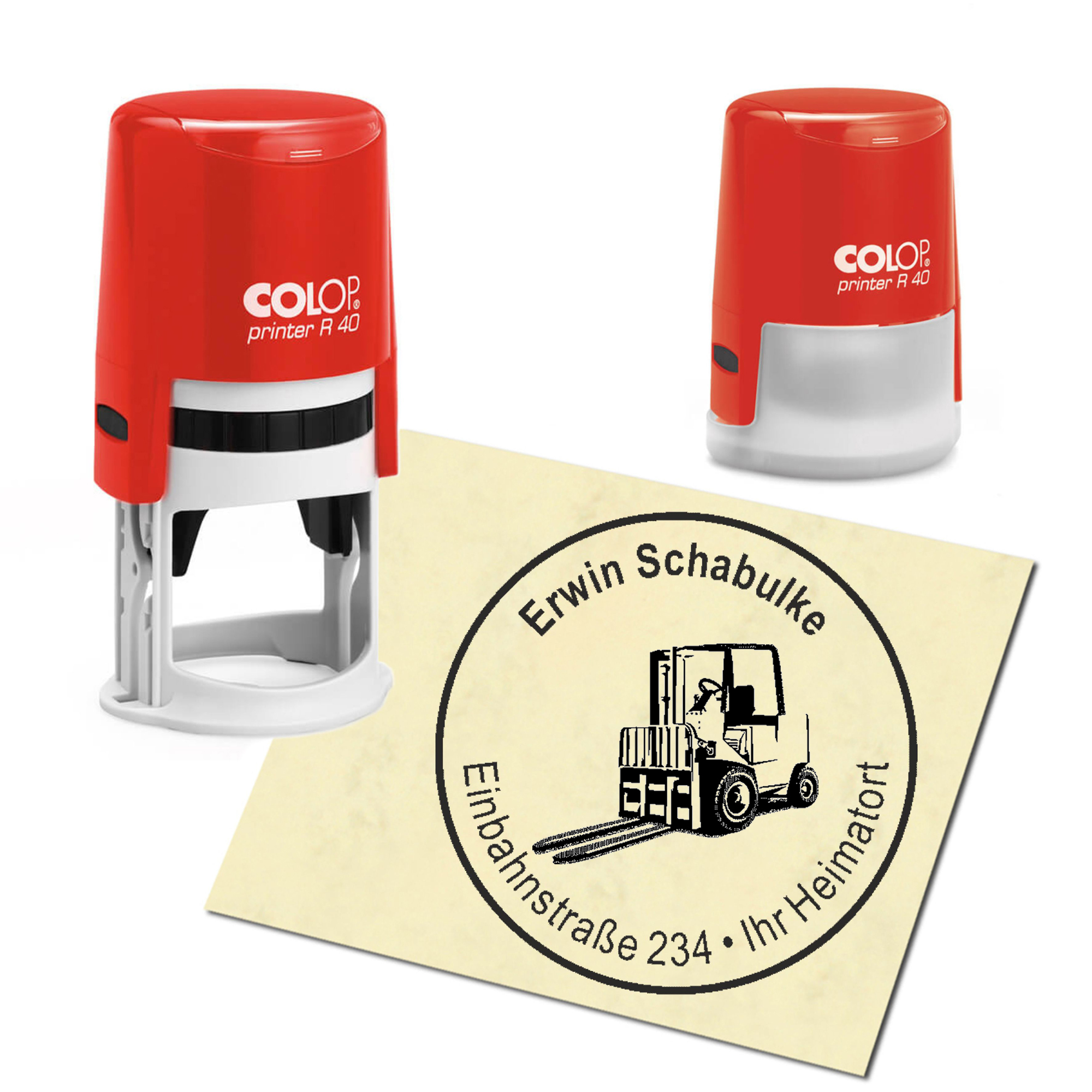 Produktinformationen "Stempel Adressstempel personalisiert - Gabelstabler - rund ∅ 40mm"