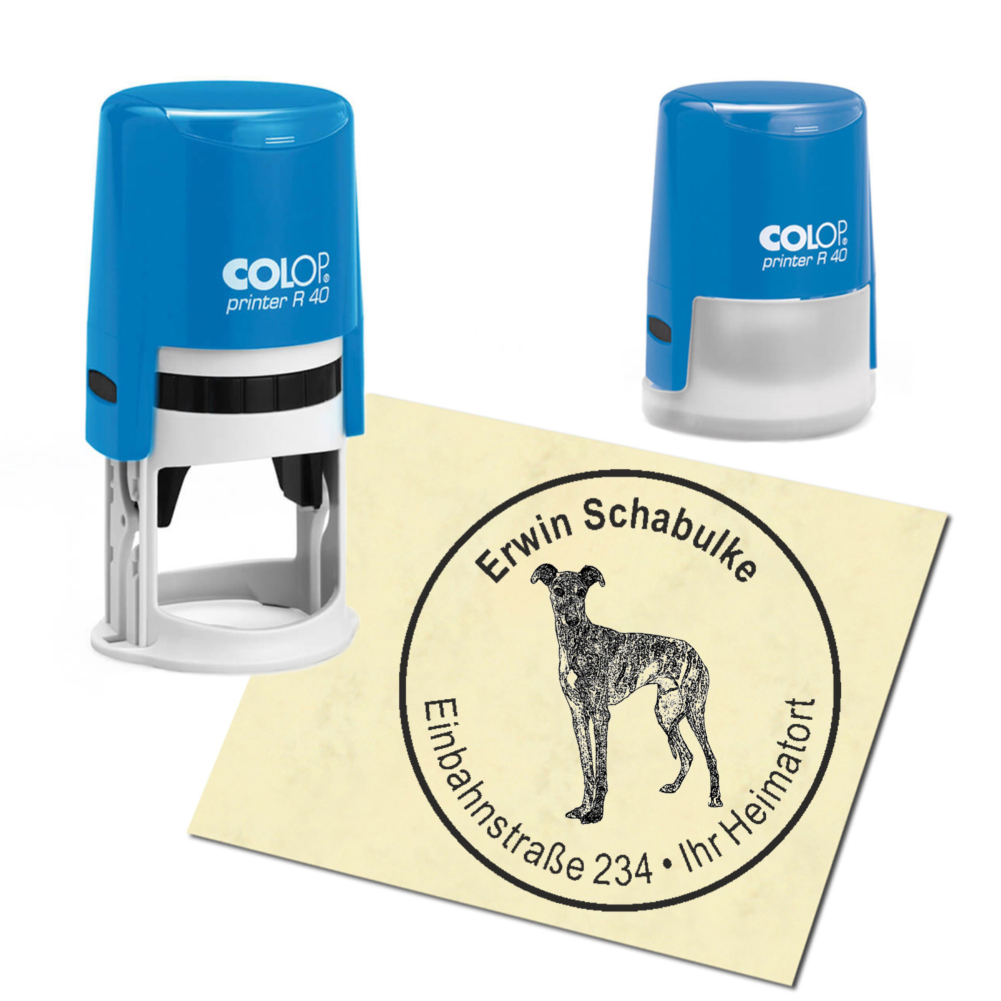 Stempel Adressstempel personalisiert - Galgo Español - rund ∅ 40mm