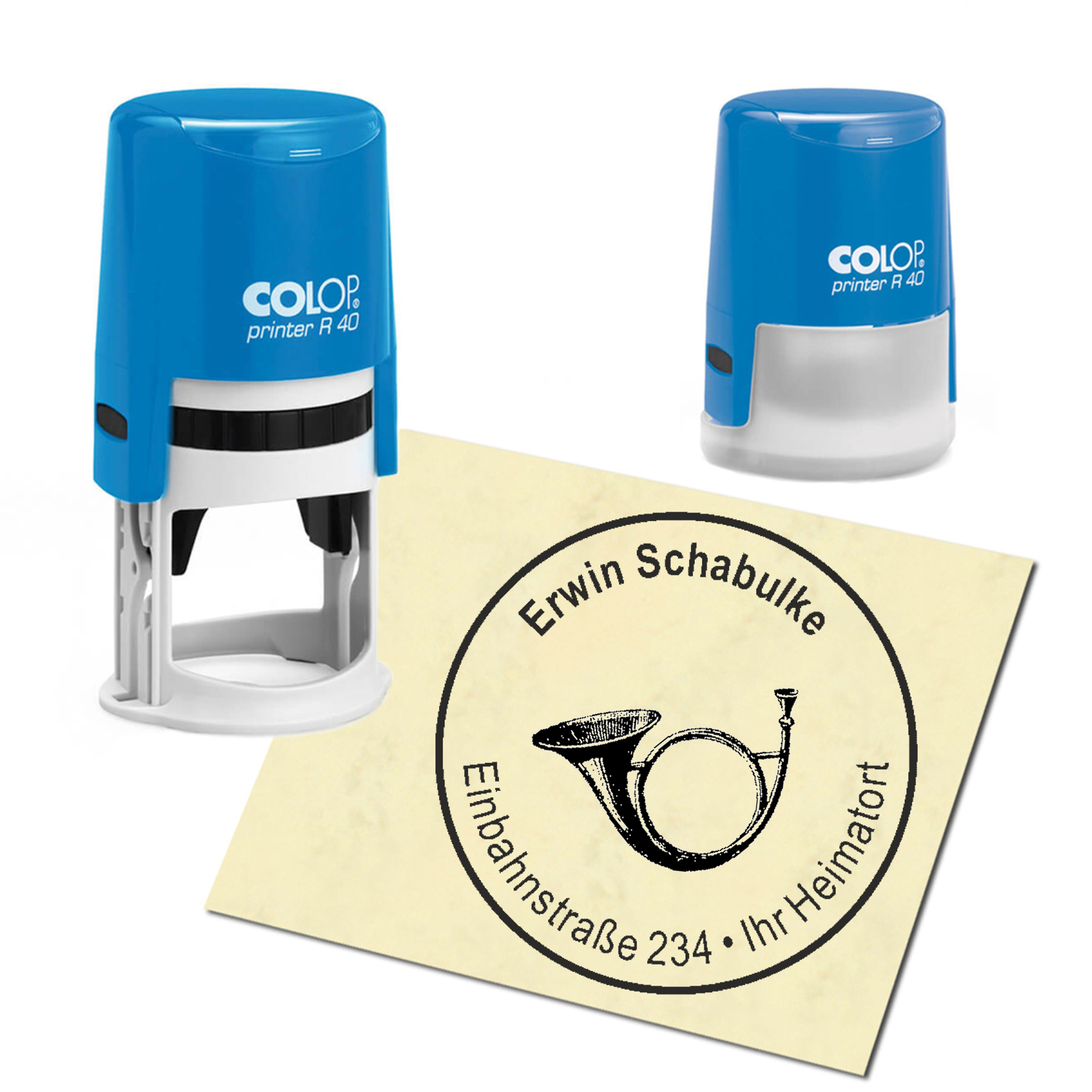 Stempel Adressstempel personalisiert - Horn - rund ∅ 40mm