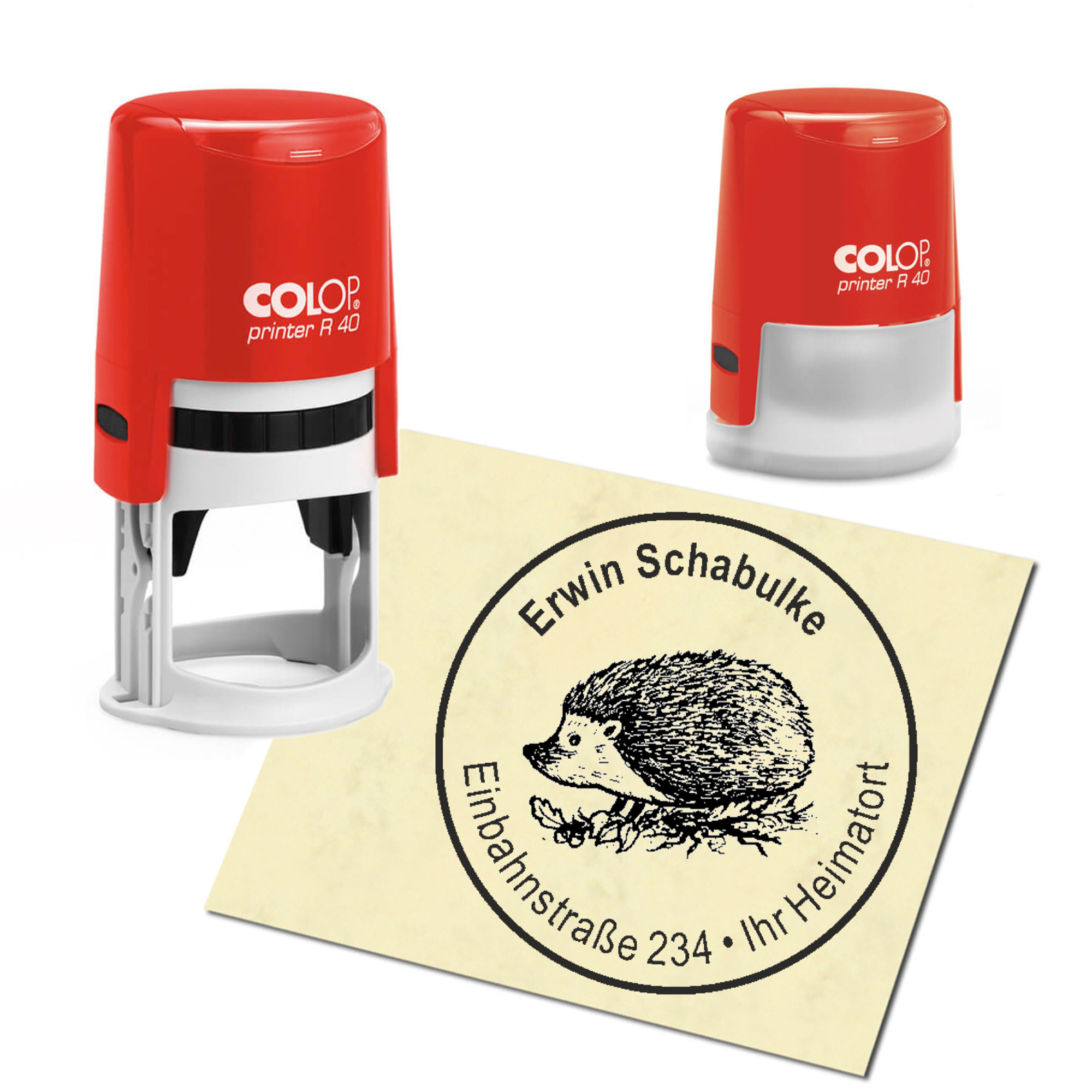 - PRODUKTDETAILS: Sie erhalten einen Automatik Stempel in der Gehäusefarbe Ihrer Wahl. Sie können zwischen rot und blau wählen. Das Stempelkissen ist im Automaten integriert und mit der Stempelfarbe schwarz getränkt. Die Abdruckgröße hat einen Durchmesser von 40mm