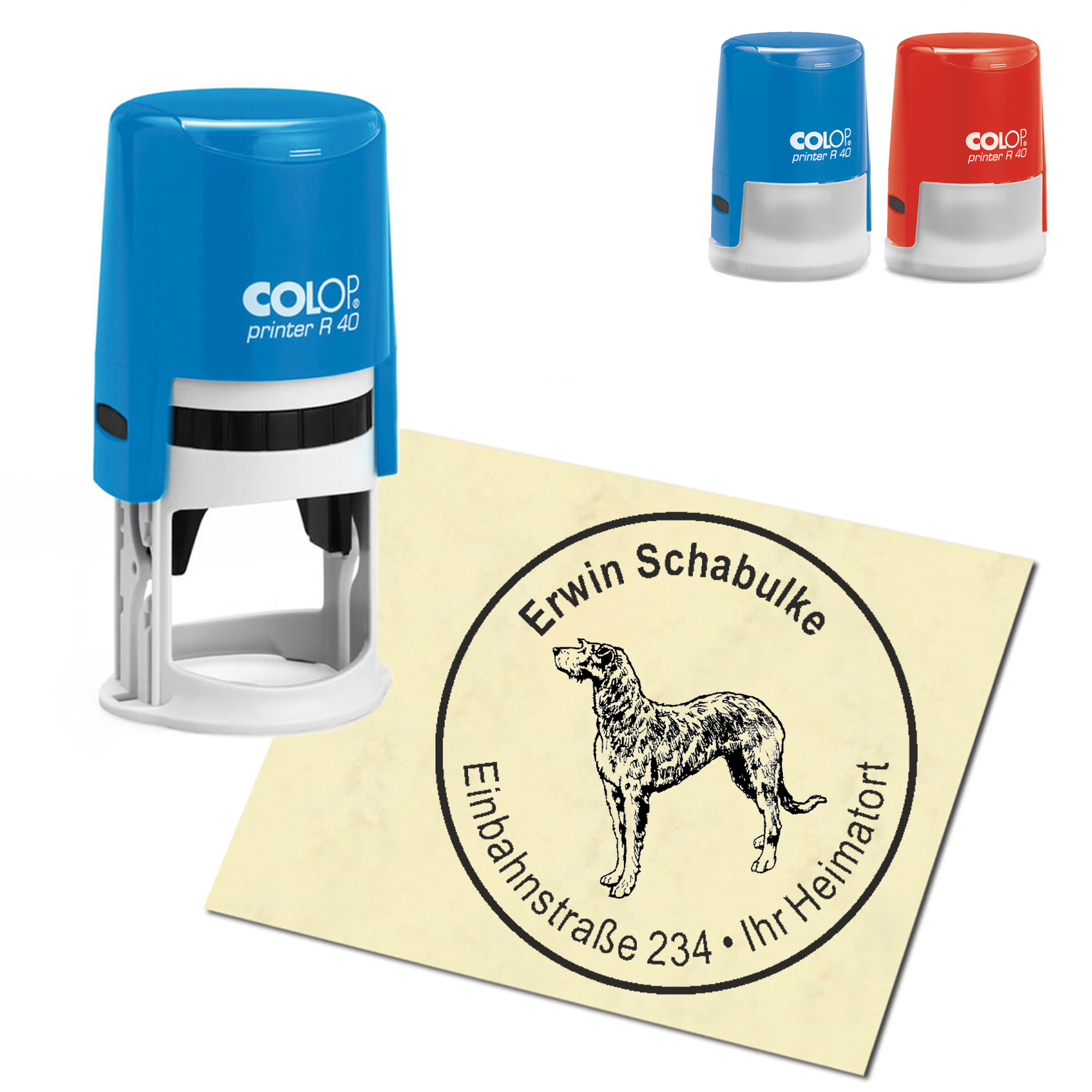 Stempel Adressstempel personalisiert - Irischer Wolfshund - rund ∅ 40mm
