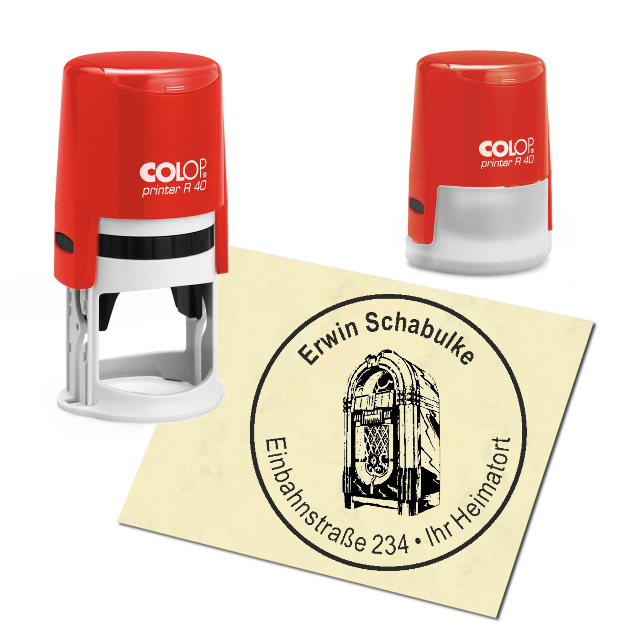 Produktinformationen "Stempel Adressstempel personalisiert - Jukebox - rund ∅ 40mm"