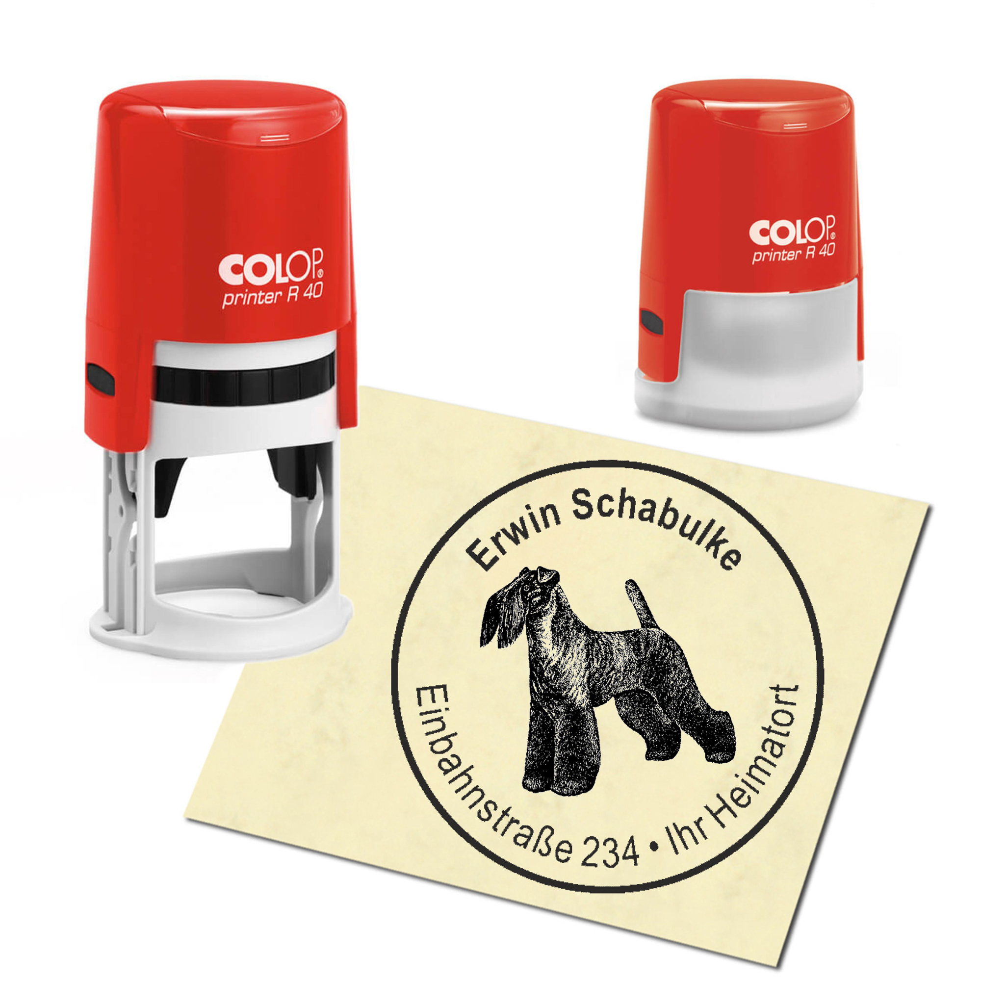 Stempel Adressstempel personalisiert - Kerry Blue Terrier - rund ∅ 40mm