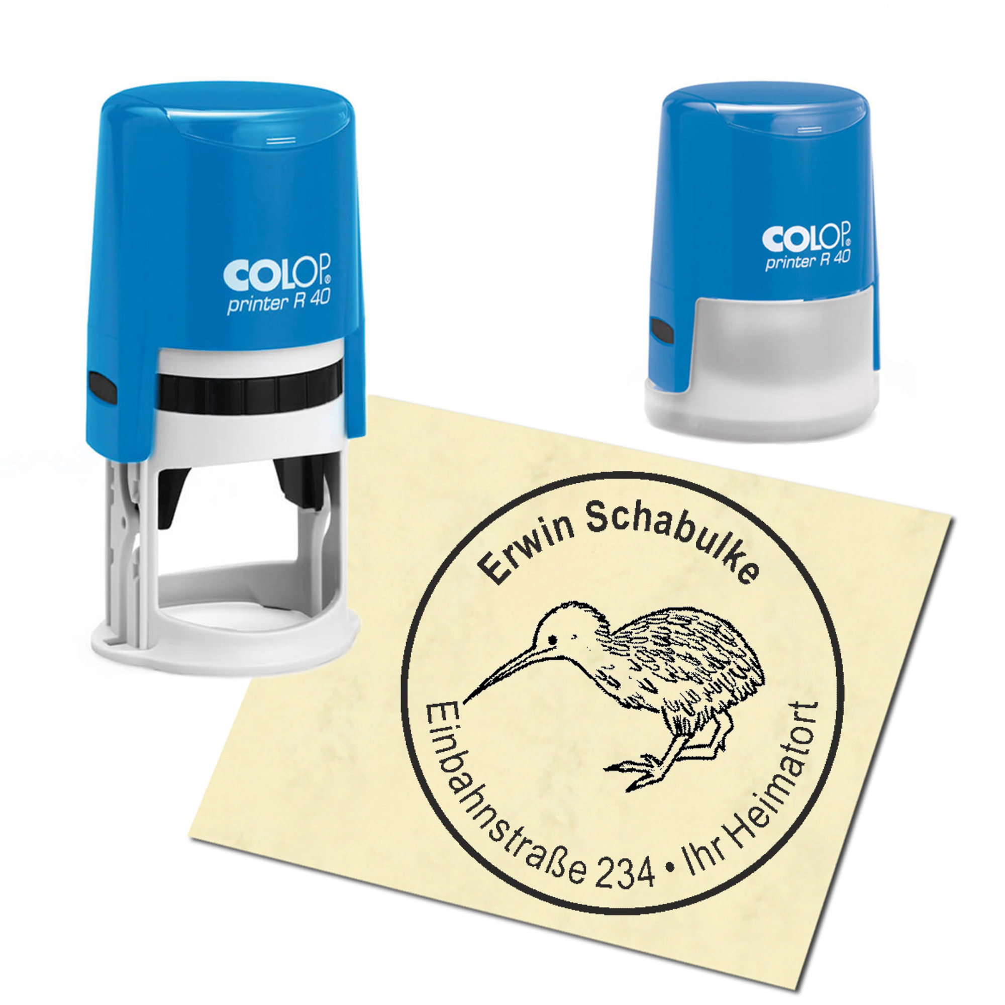 Stempel Adressstempel personalisiert - Kiwi - rund ∅ 40mm
