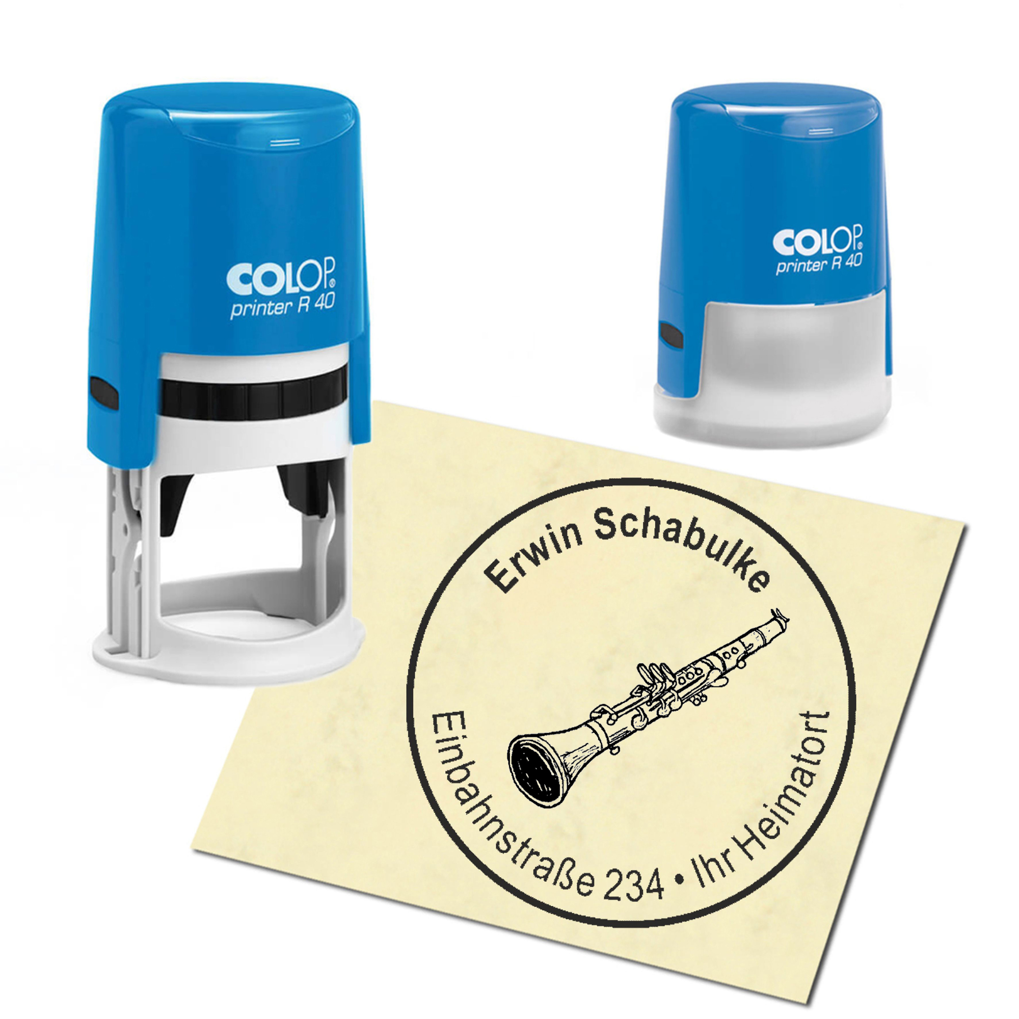 Stempel Adressstempel personalisiert - Klarinette - rund ∅ 40mm