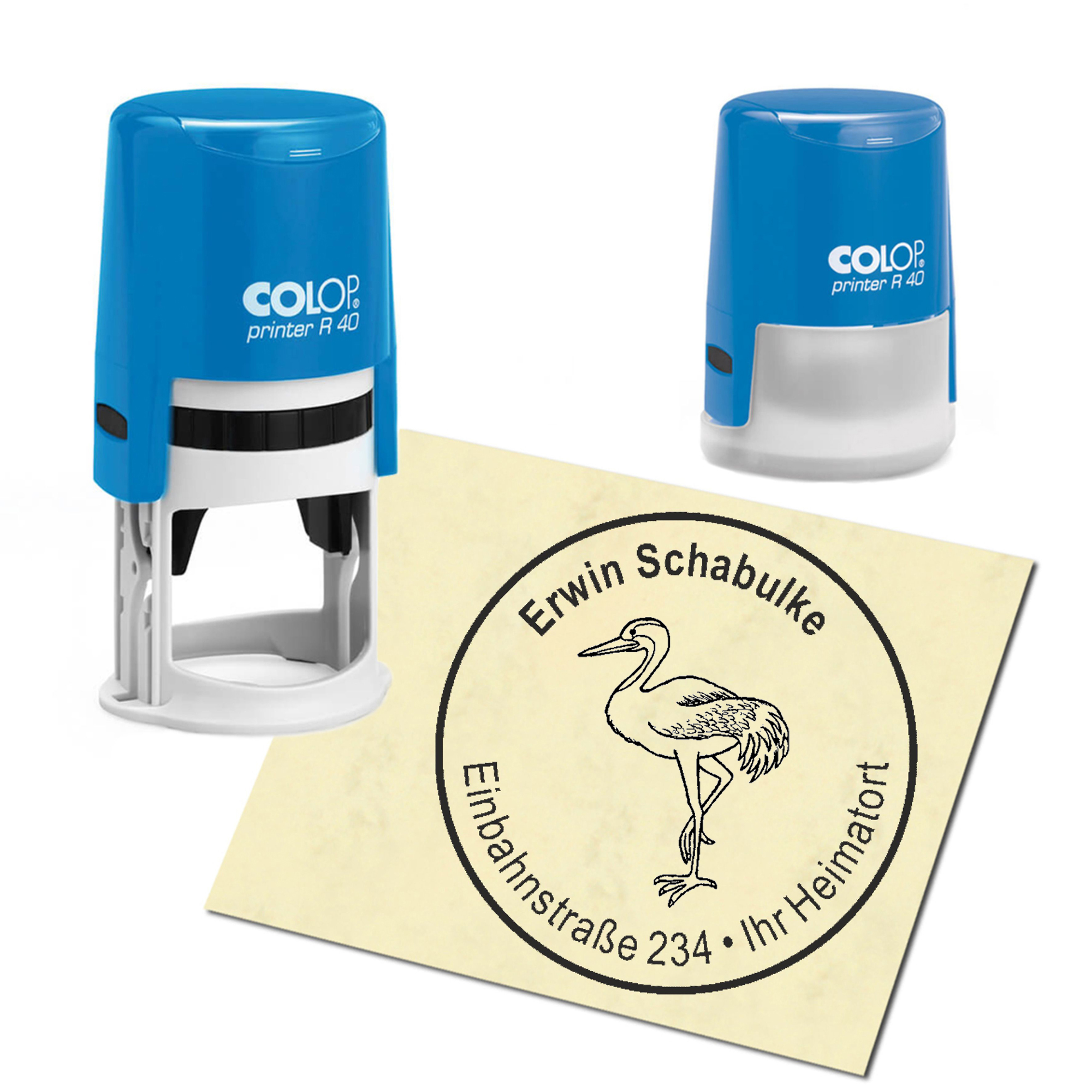 Produktinformationen "Stempel Adressstempel personalisiert - Kranich - rund ∅ 40mm"