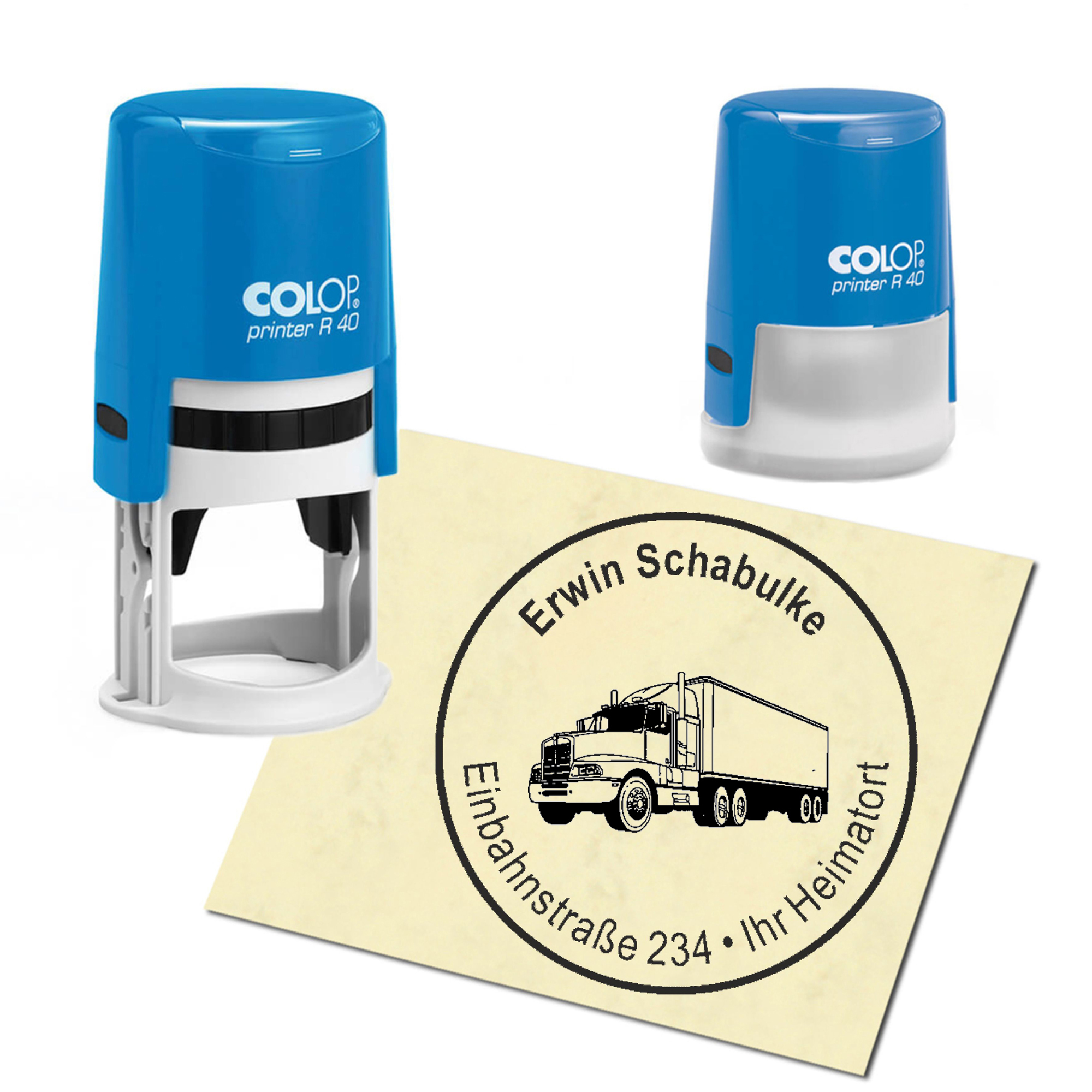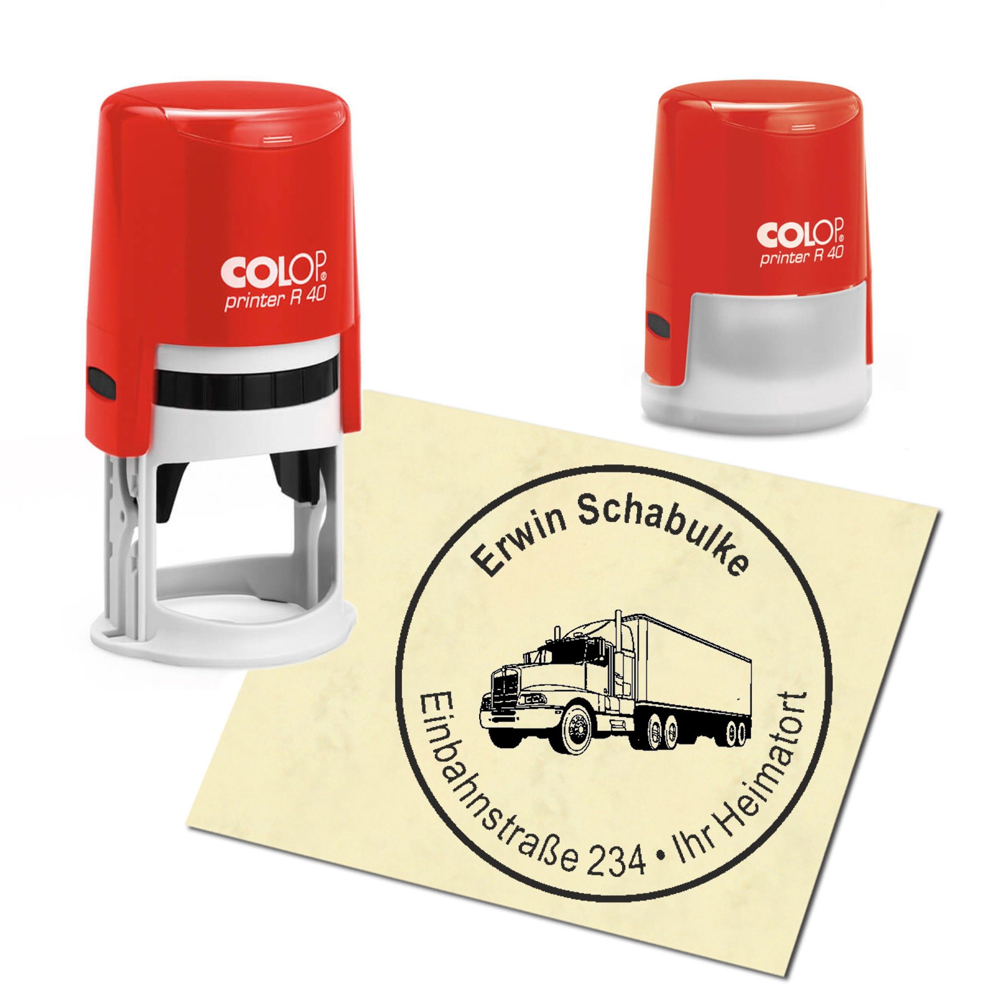 Produktinformationen "Stempel Adressstempel personalisiert - LKW - rund ∅ 40mm"