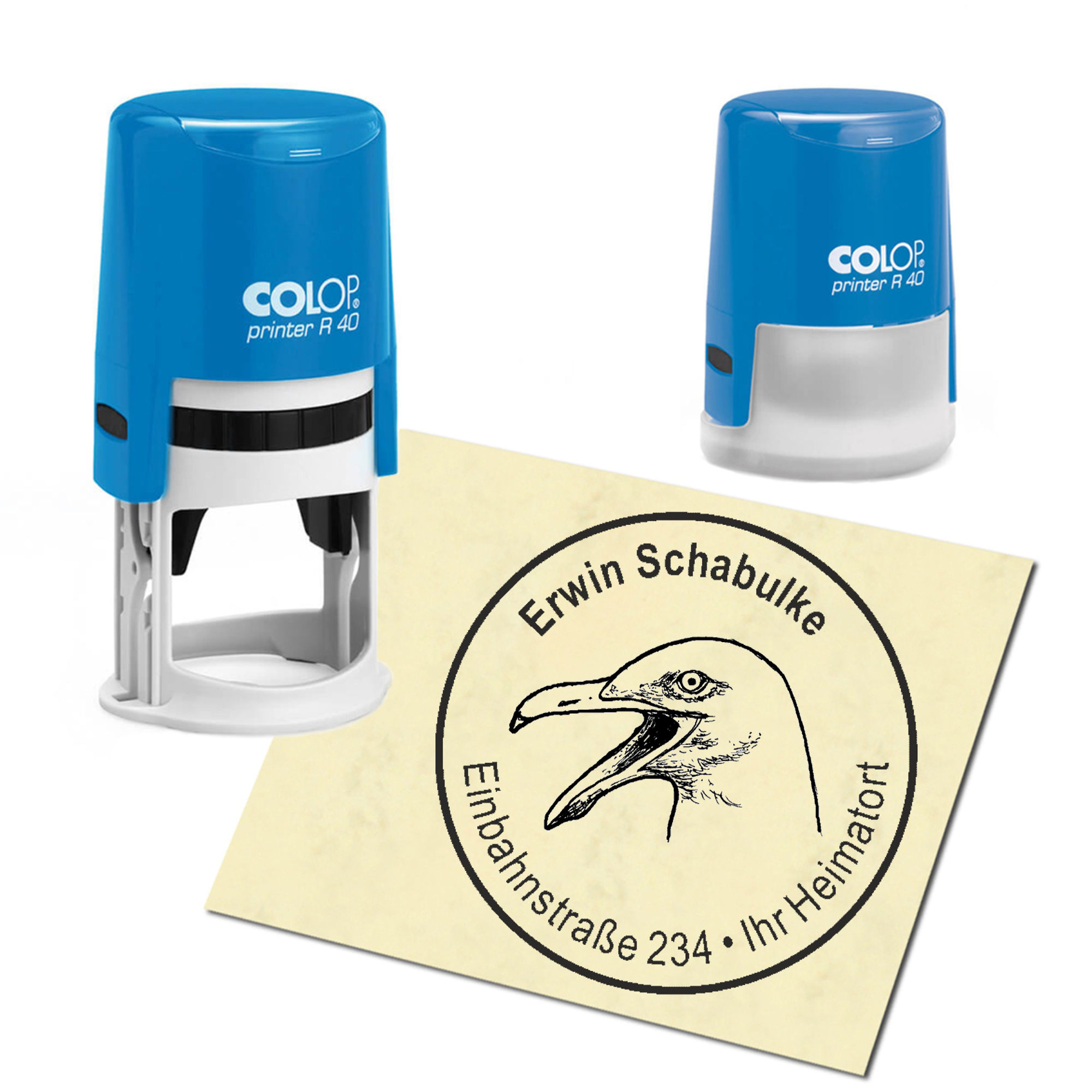 Stempel Adressstempel personalisiert - Möwe Kopf - rund ∅ 40mm