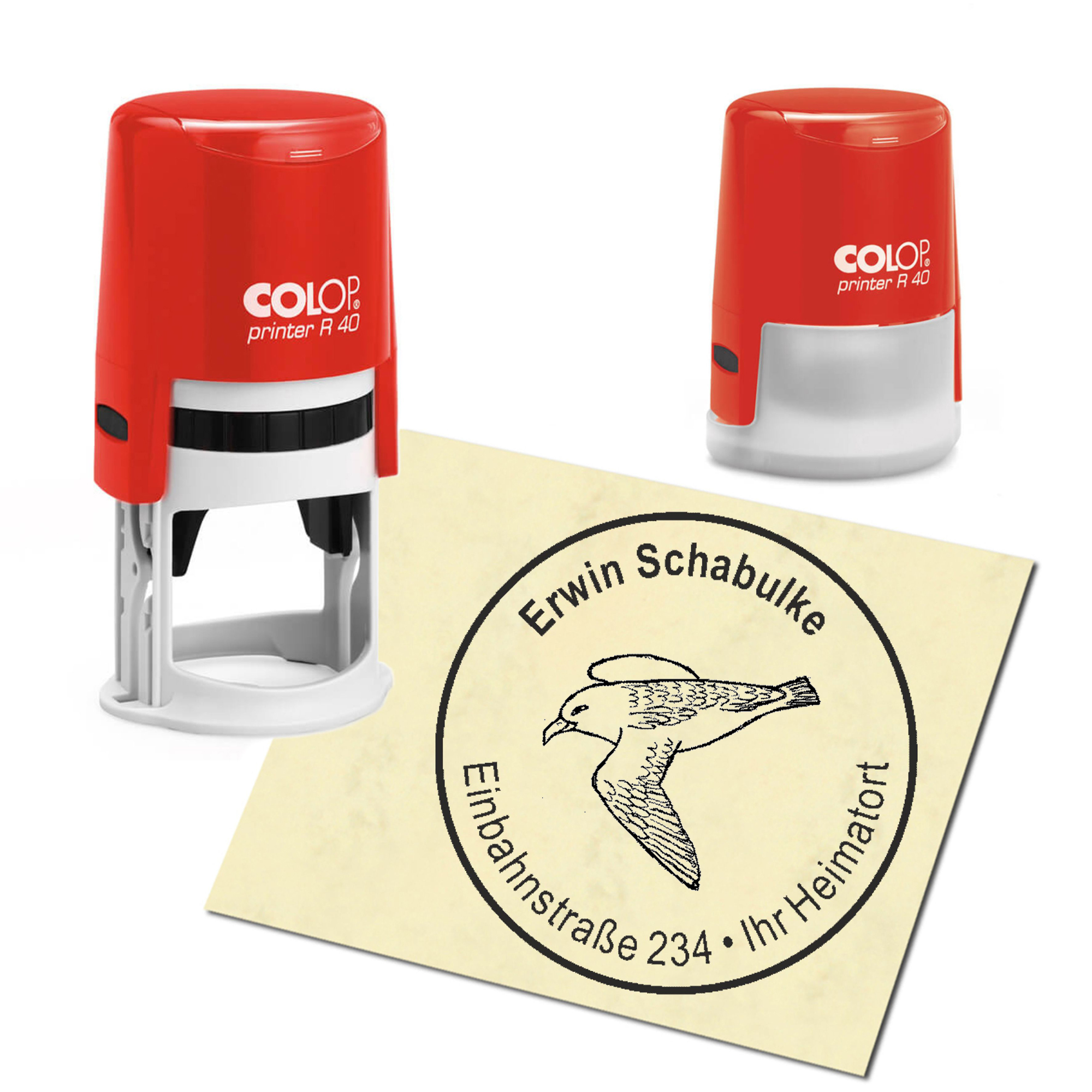 - PRODUKTDETAILS: Sie erhalten einen Automatik Stempel in der Gehäusefarbe Ihrer Wahl. Sie können zwischen rot und blau wählen. Das Stempelkissen ist im Automaten integriert und mit der Stempelfarbe schwarz getränkt. Die Abdruckgröße hat einen Durchmesser von 40mm