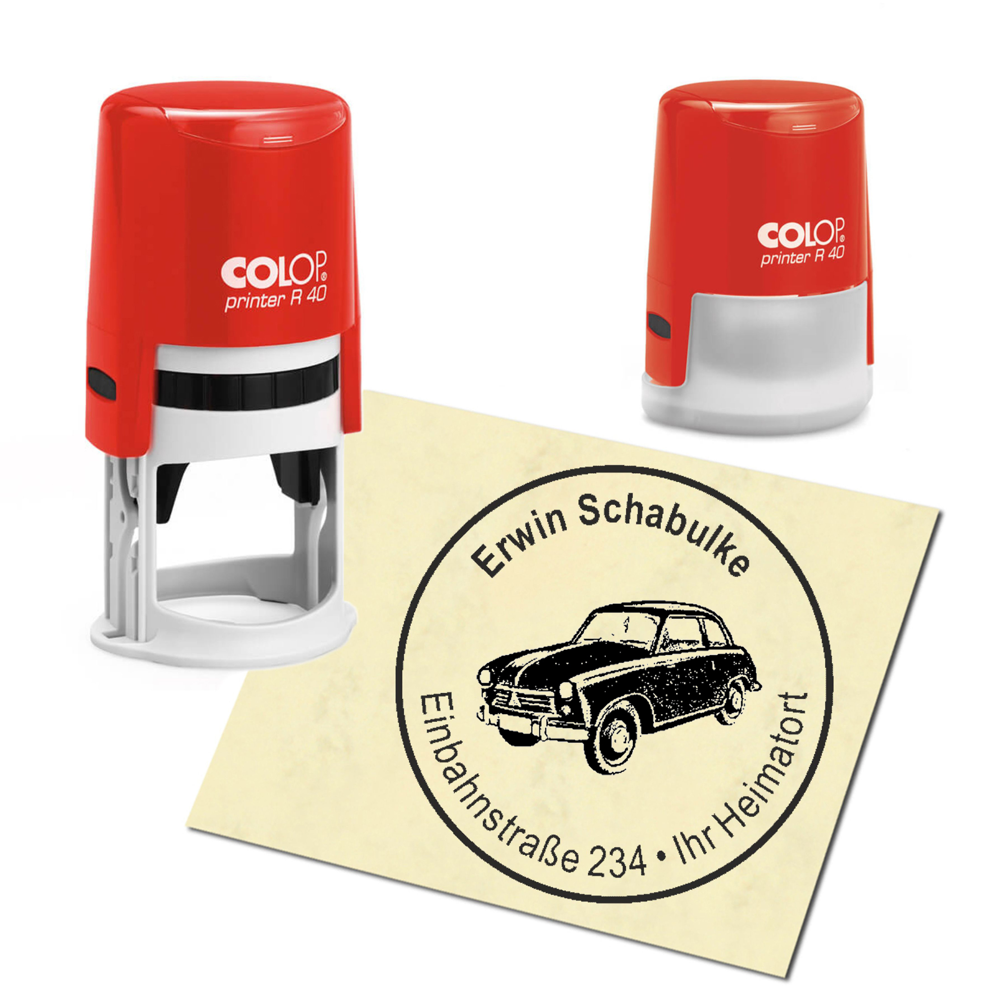 Produktinformationen "Stempel Adressstempel personalisiert - Oldtimer - rund ∅ 40mm"
