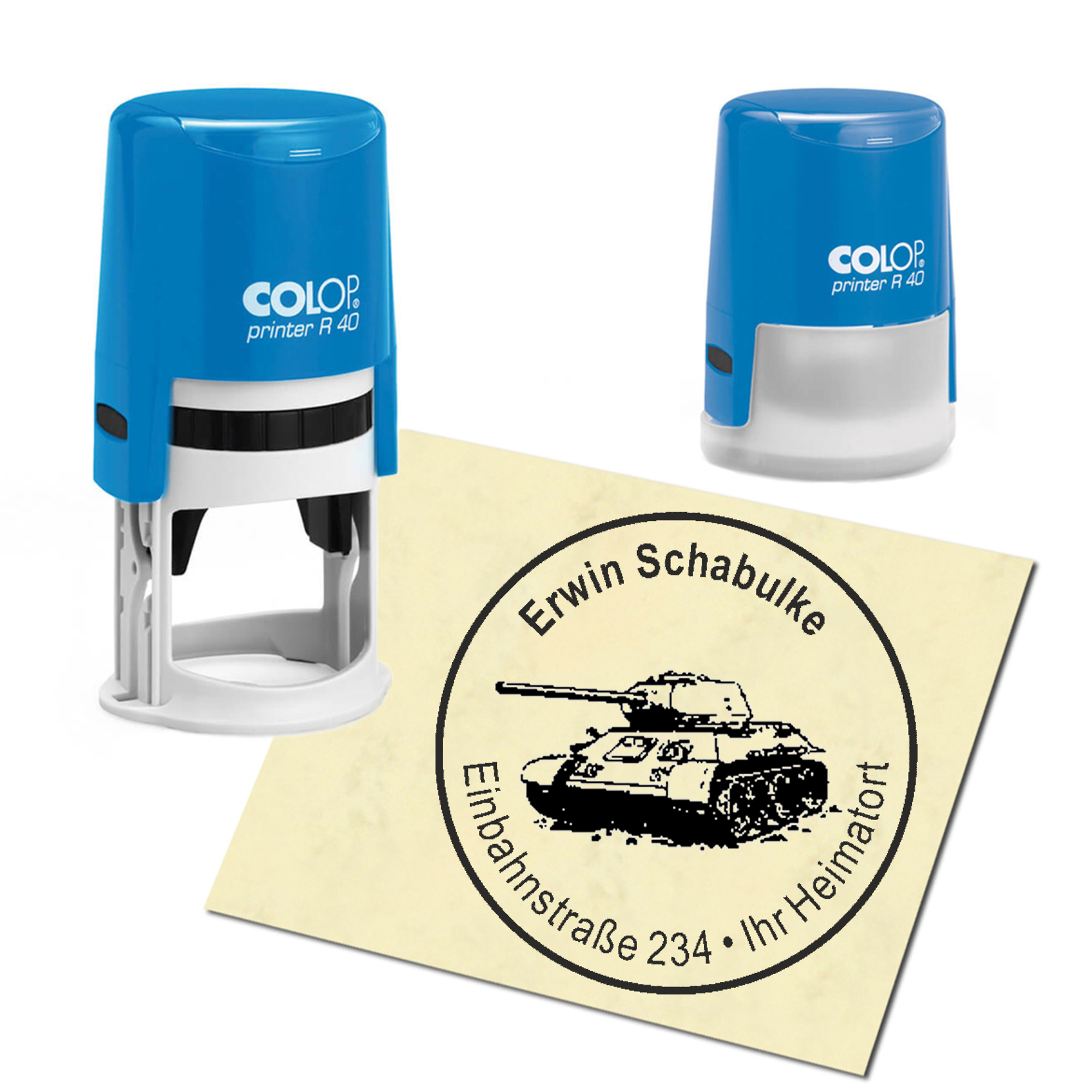 Stempel Adressstempel personalisiert - Panzer Tank Kampfpanzer - rund 40mm