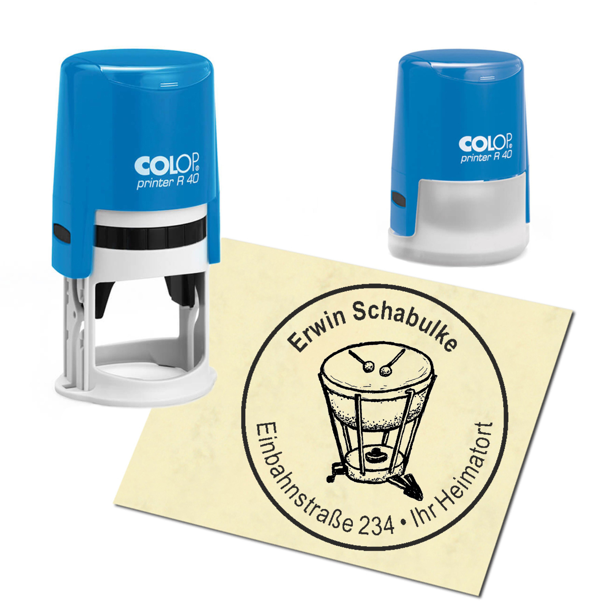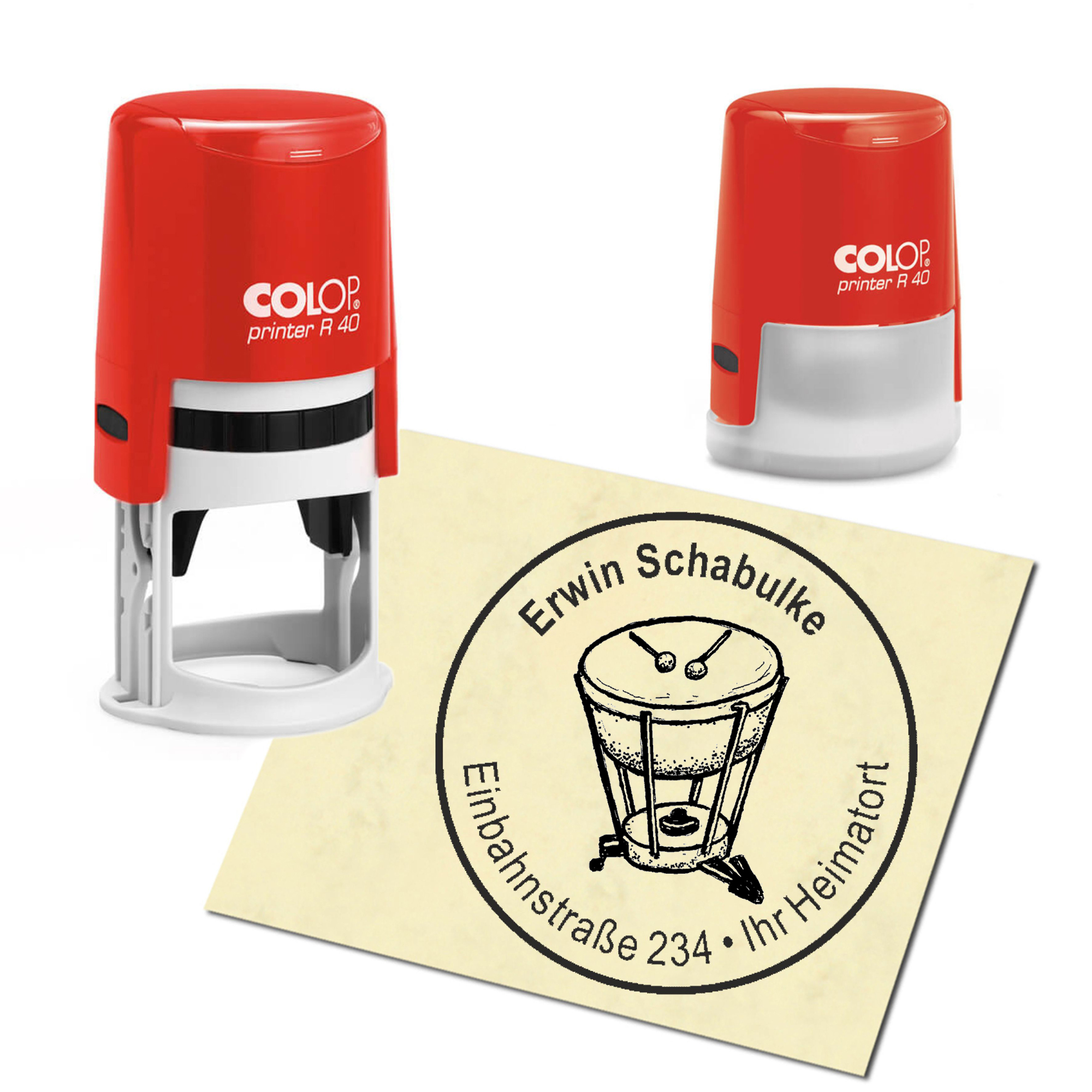 Produktinformationen "Stempel Adressstempel personalisiert - Pauke - rund ∅ 40mm"