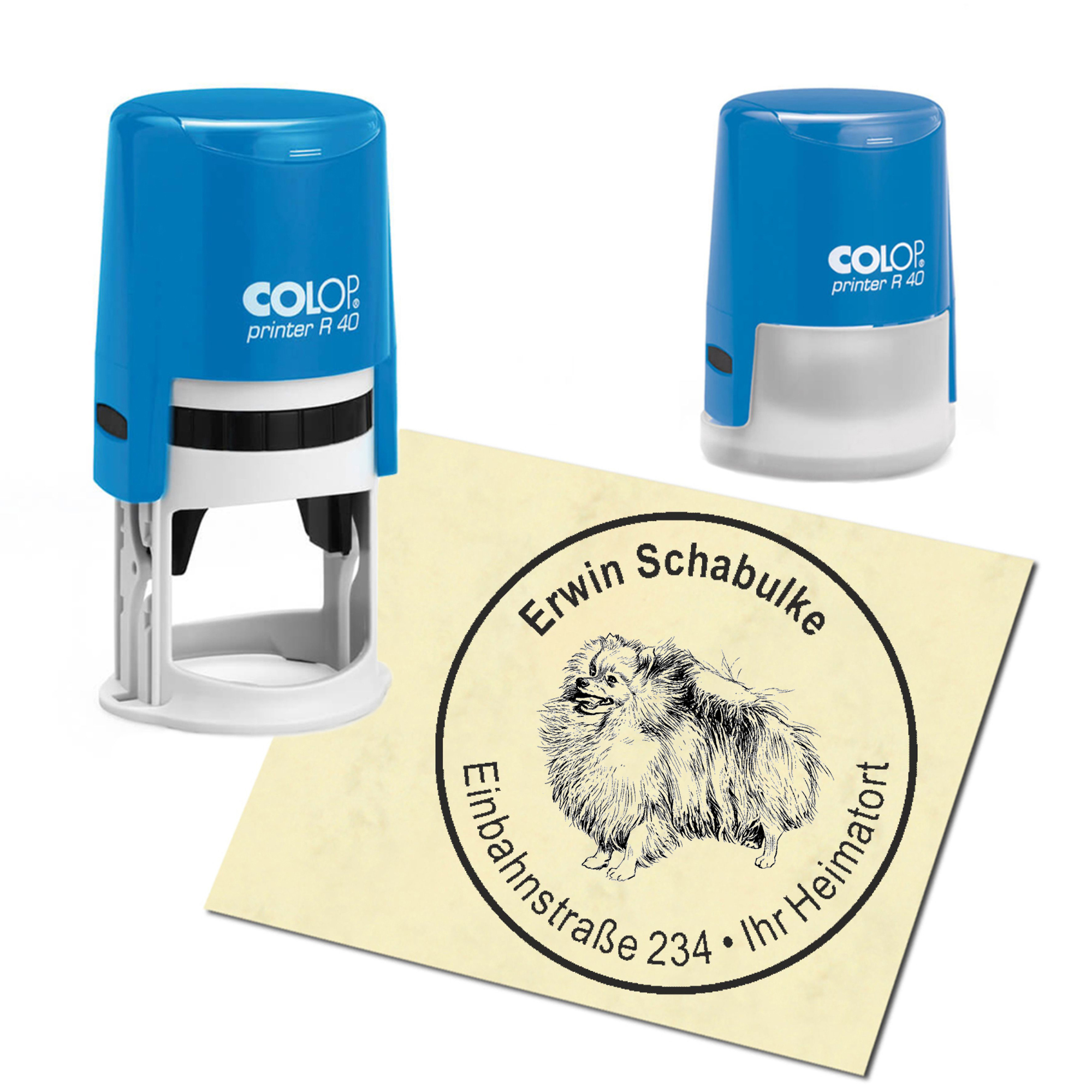 Produktinformationen "Stempel Adressstempel personalisiert - Pomeranian Zwergspitz - rund ∅ 40mm"