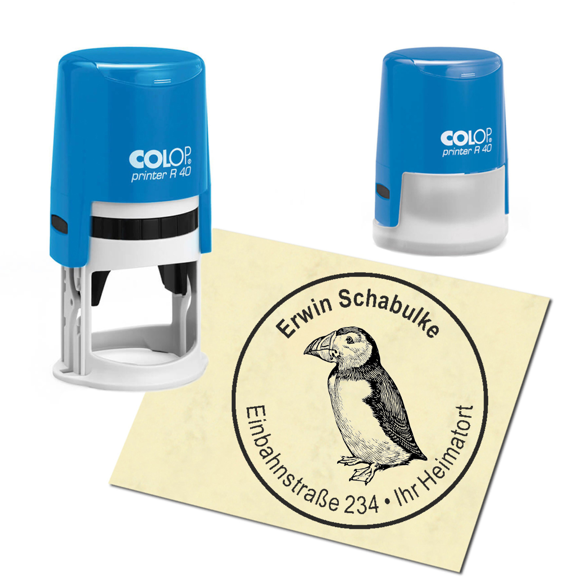 Produktinformationen "Stempel Adressstempel personalisiert - Puffin Papageitaucher - rund ∅ 40mm"