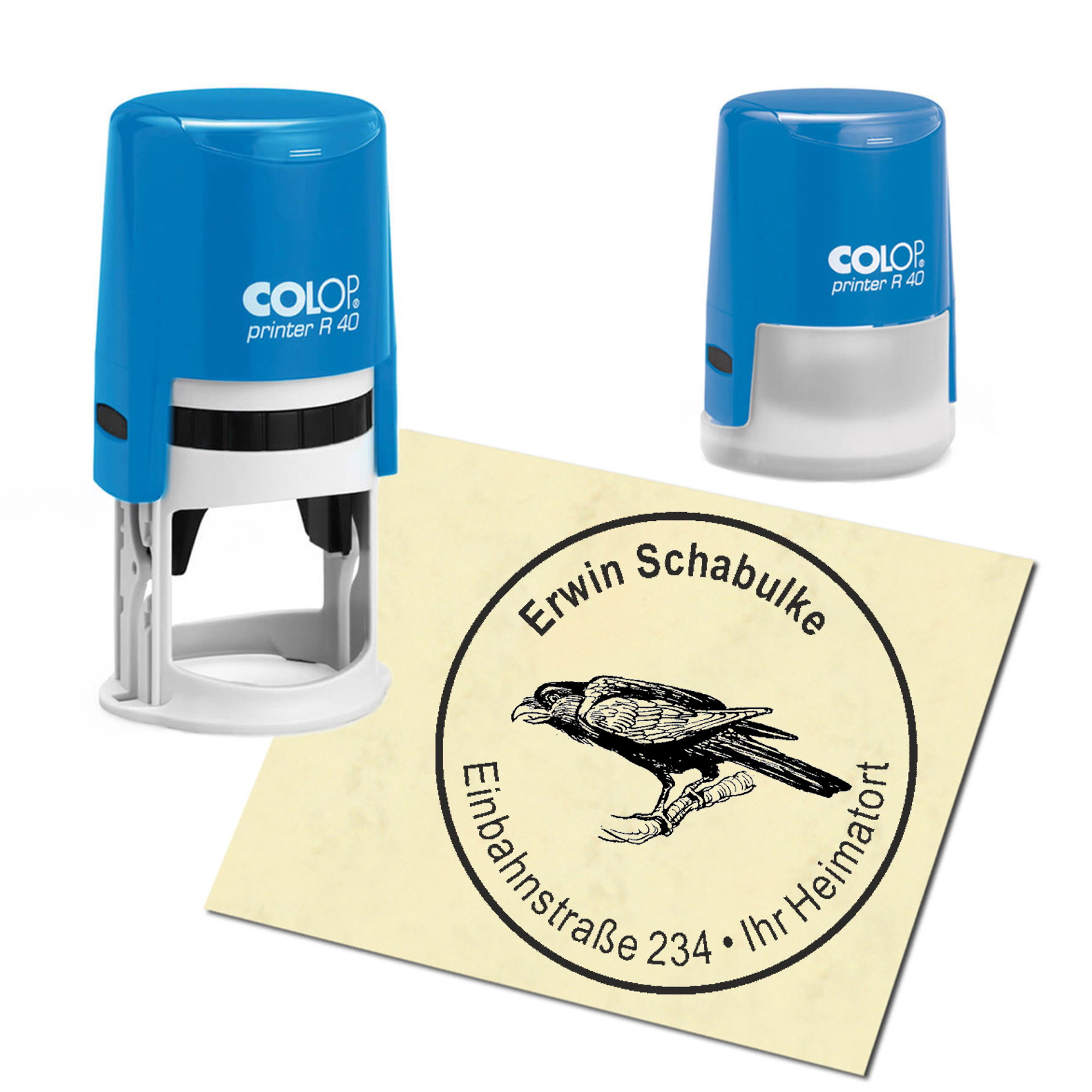 Stempel Adressstempel personalisiert - Rabe - rund ∅ 40mm