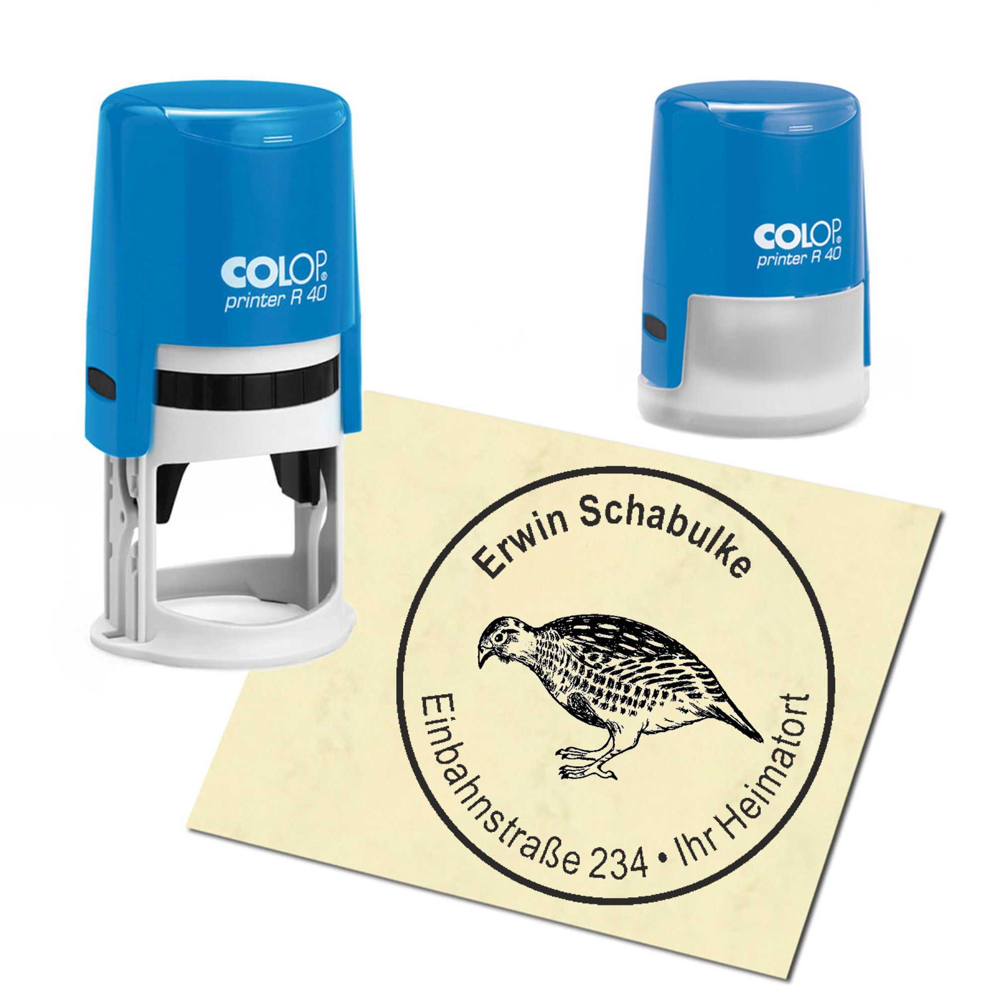 Stempel Adressstempel personalisiert - Rebhuhn - rund ∅ 40mm