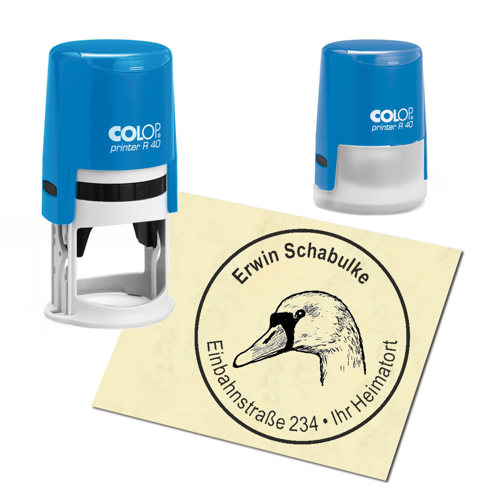 Stempel Adressstempel personalisiert - Schwan Kopf - rund ∅ 40mm