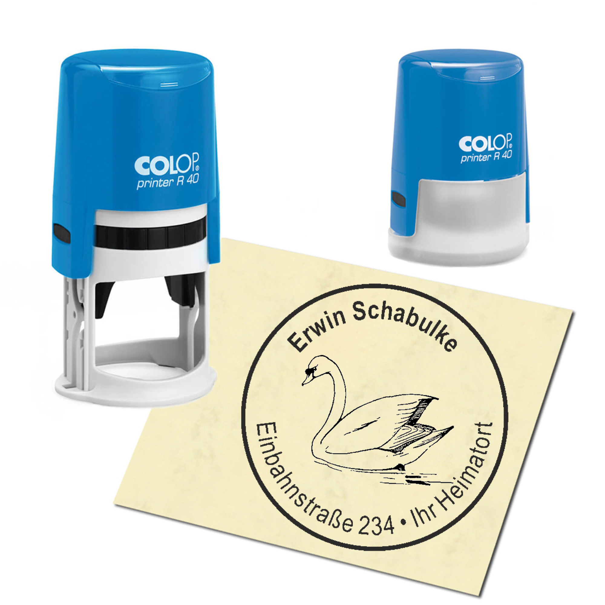 Stempel Adressstempel personalisiert - Schwan - rund ∅ 40mm