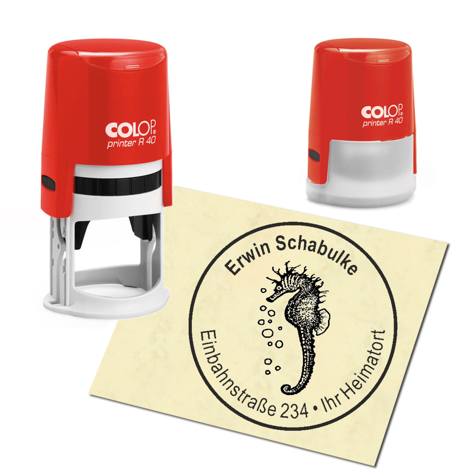 - PRODUKTDETAILS: Sie erhalten einen Automatik Stempel in der Gehäusefarbe Ihrer Wahl. Sie können zwischen rot und blau wählen. Das Stempelkissen ist im Automaten integriert und mit der Stempelfarbe schwarz getränkt. Die Abdruckgröße hat einen Durchmesser von 40mm