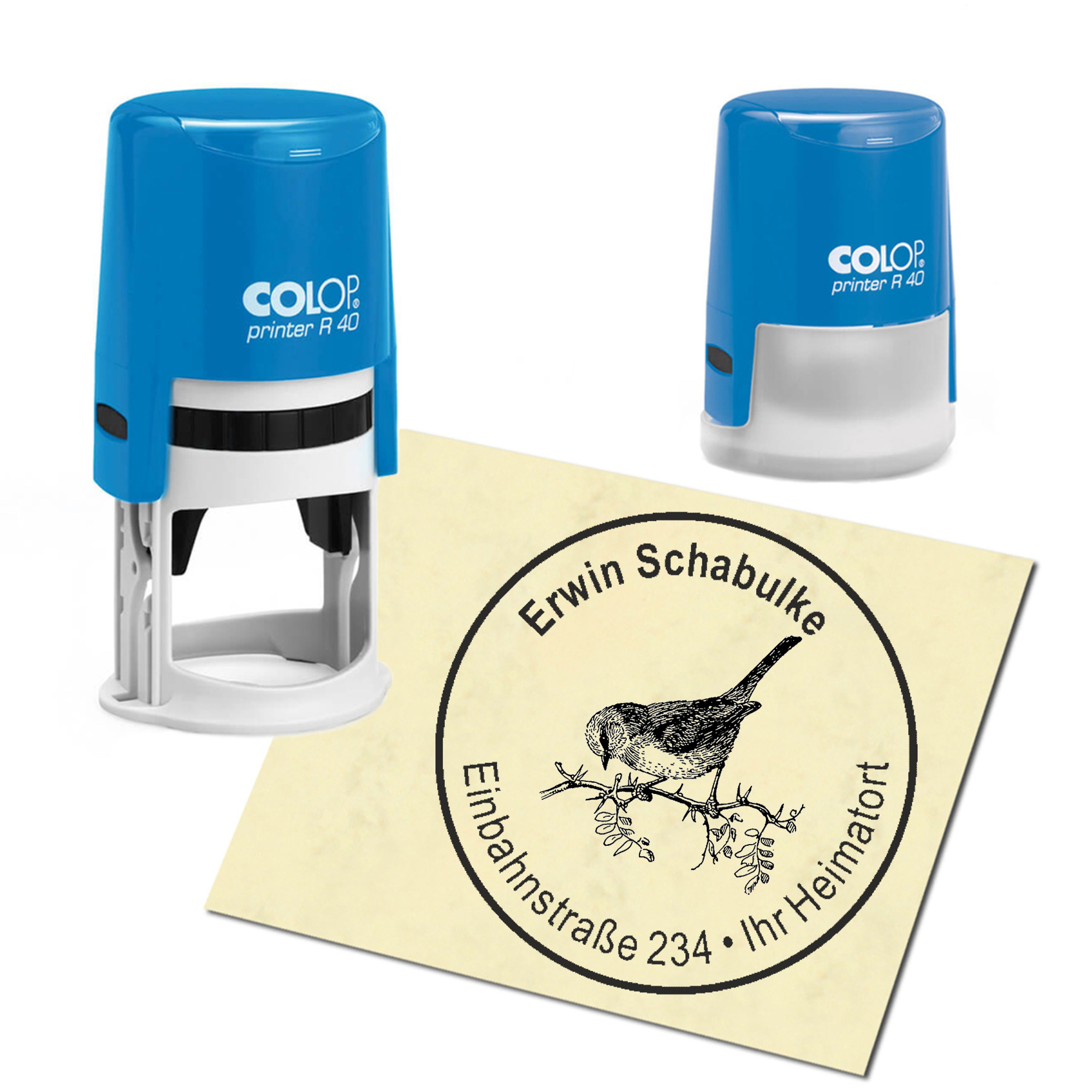 Stempel Adressstempel personalisiert - Spatz - rund ∅ 40mm