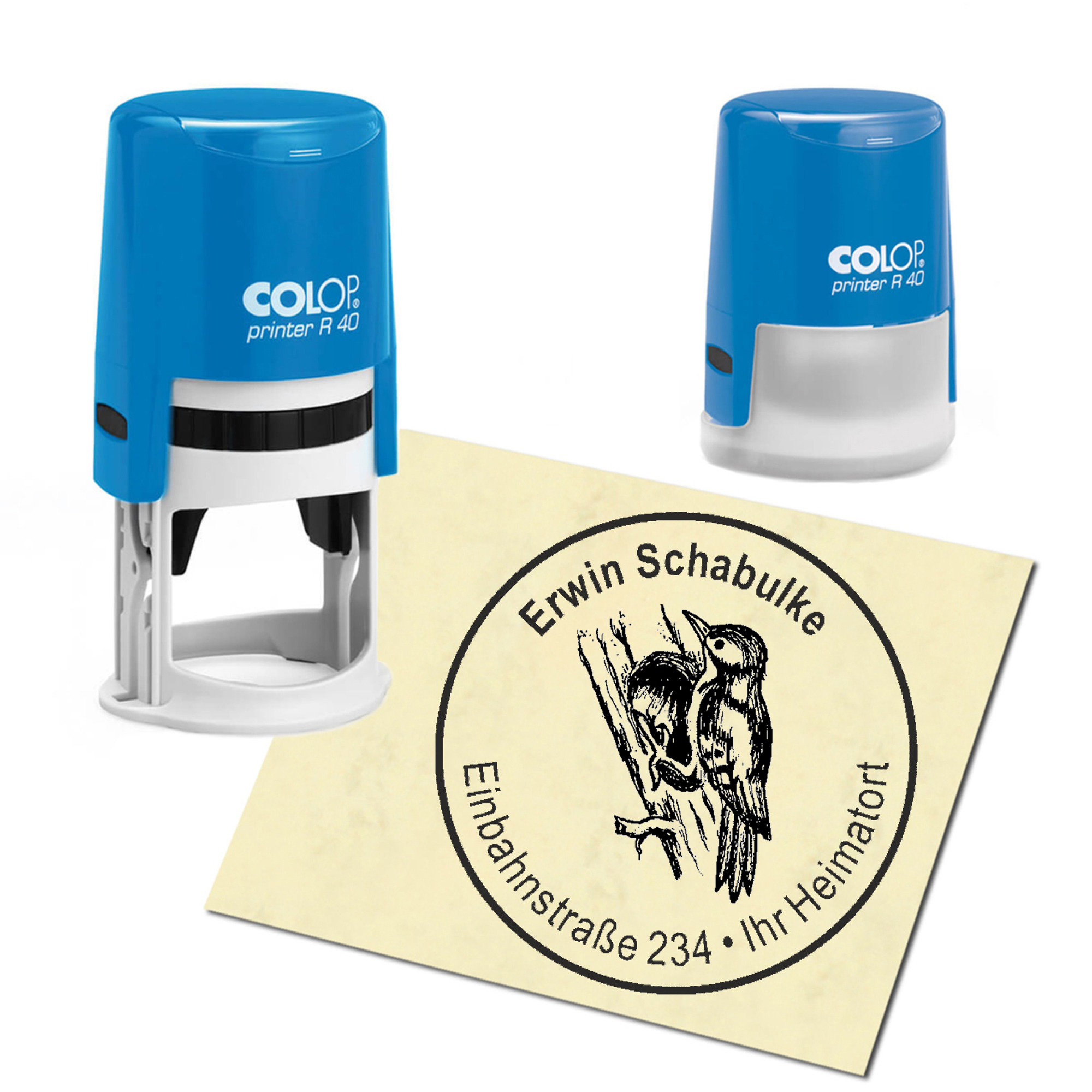 Stempel Adressstempel personalisiert - Specht - rund ∅ 40mm