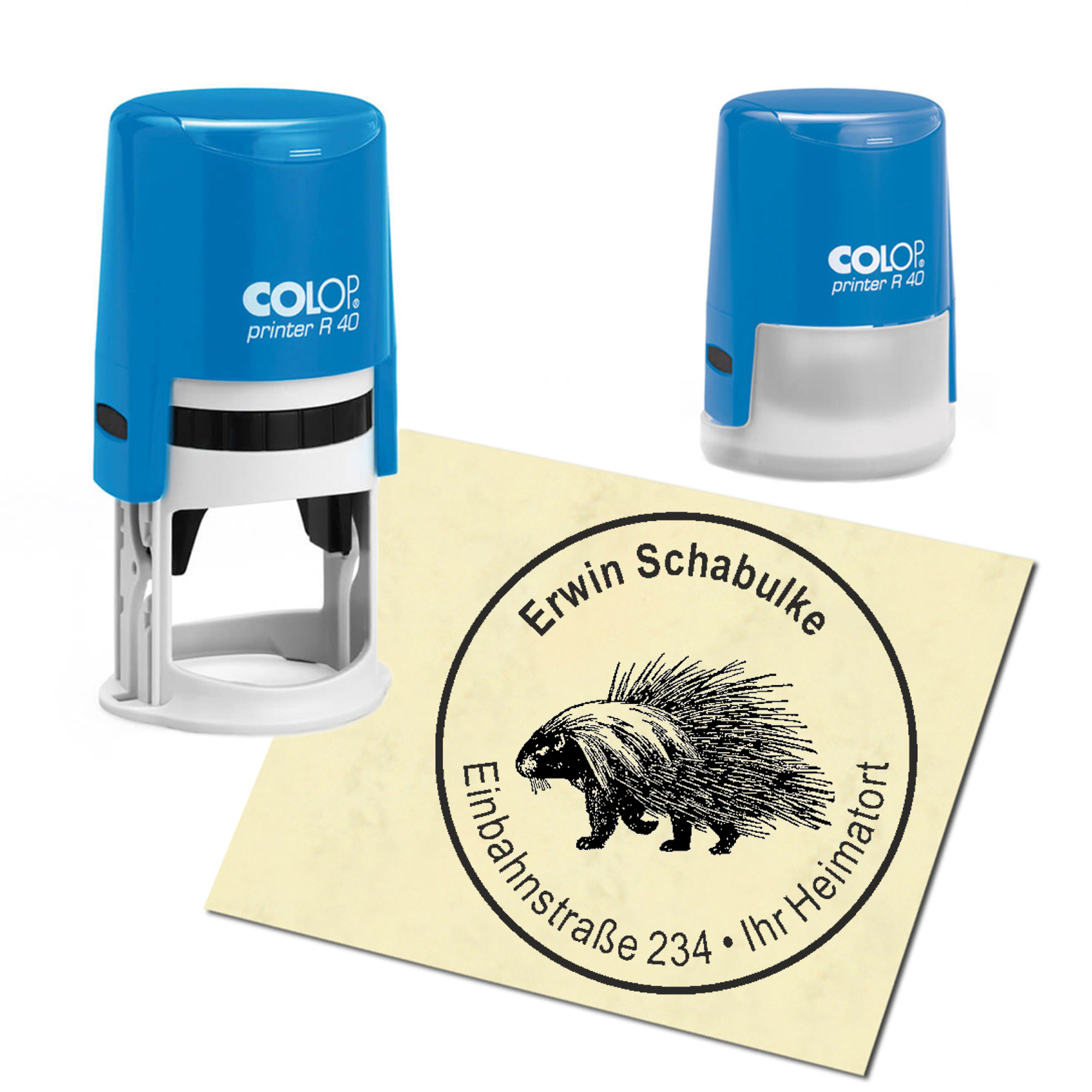 Produktinformationen "Stempel Adressstempel personalisiert - Stachelschwein - rund ∅ 40mm"