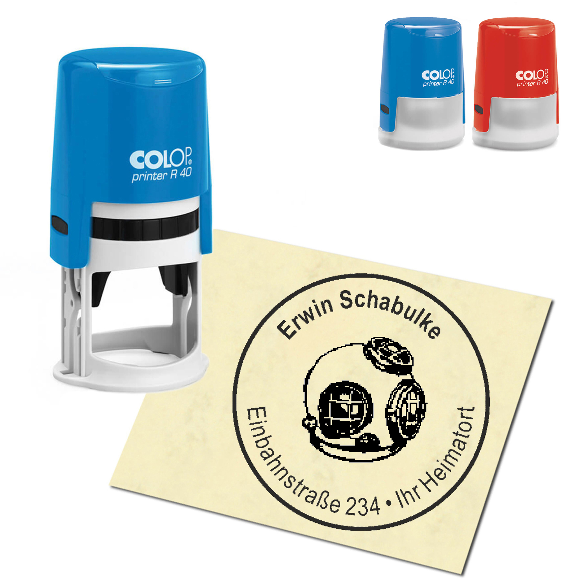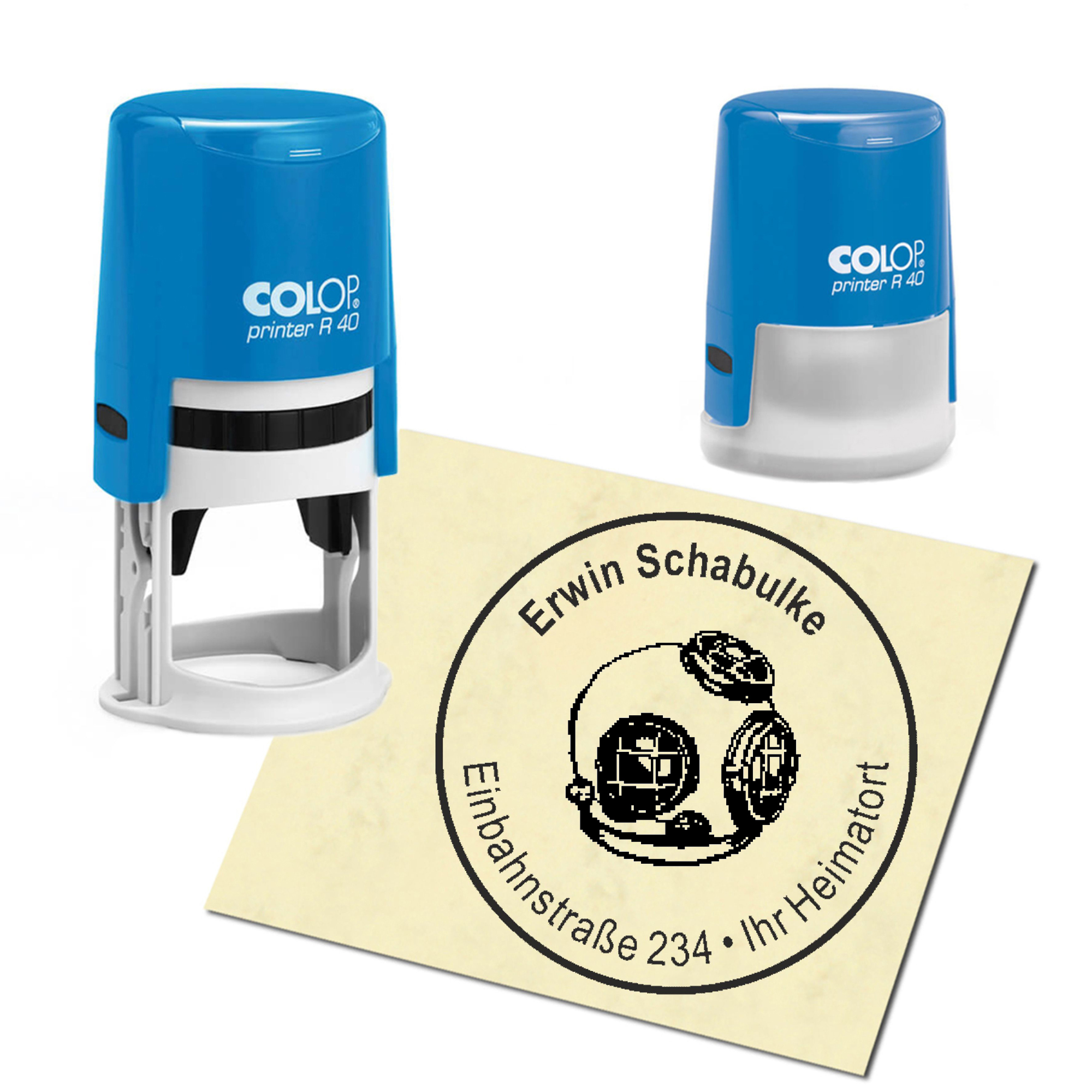 Stempel Adressstempel personalisiert - Taucherhelm - rund ∅ 40mm