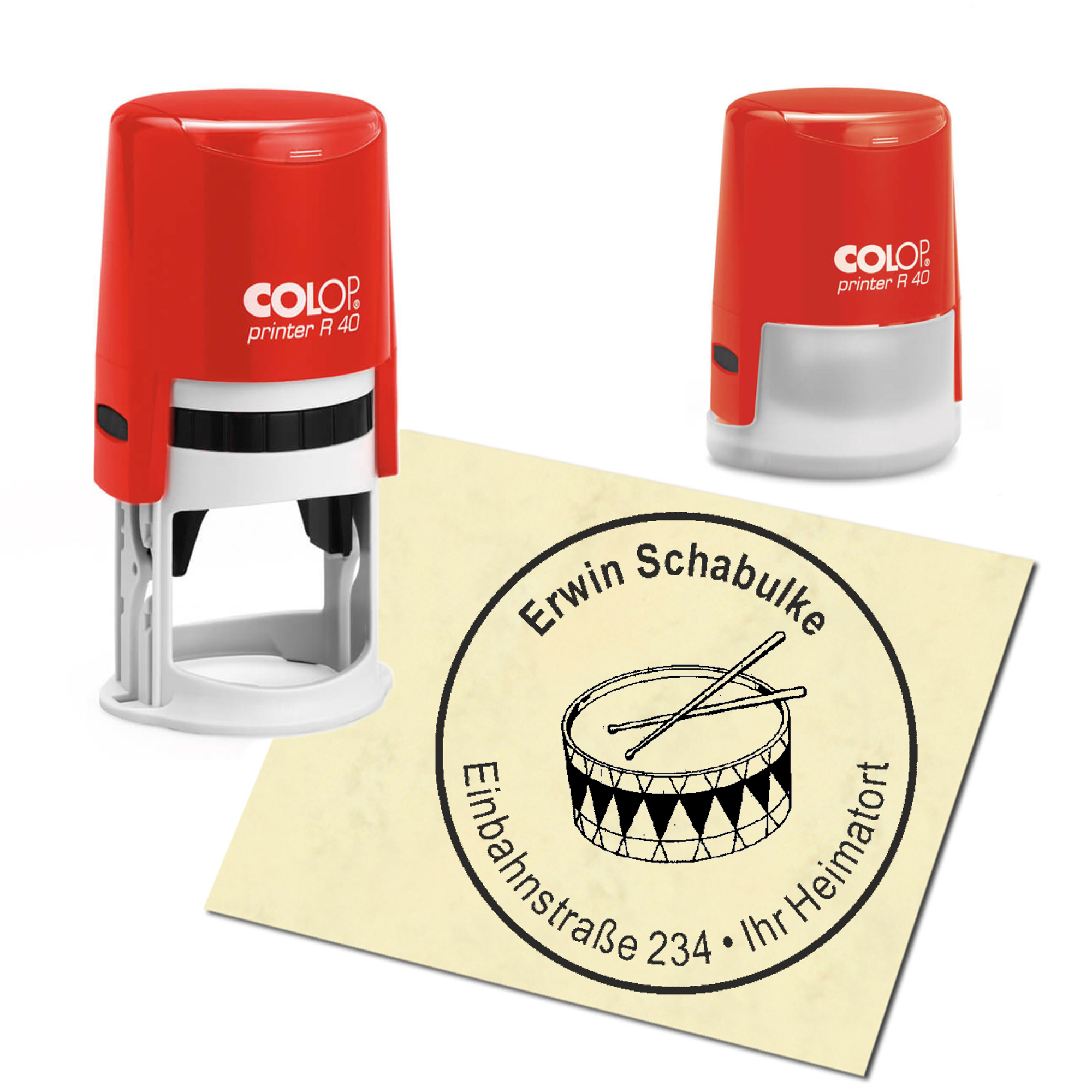 Produktinformationen "Stempel Adressstempel personalisiert - Trommel - rund ∅ 40mm"