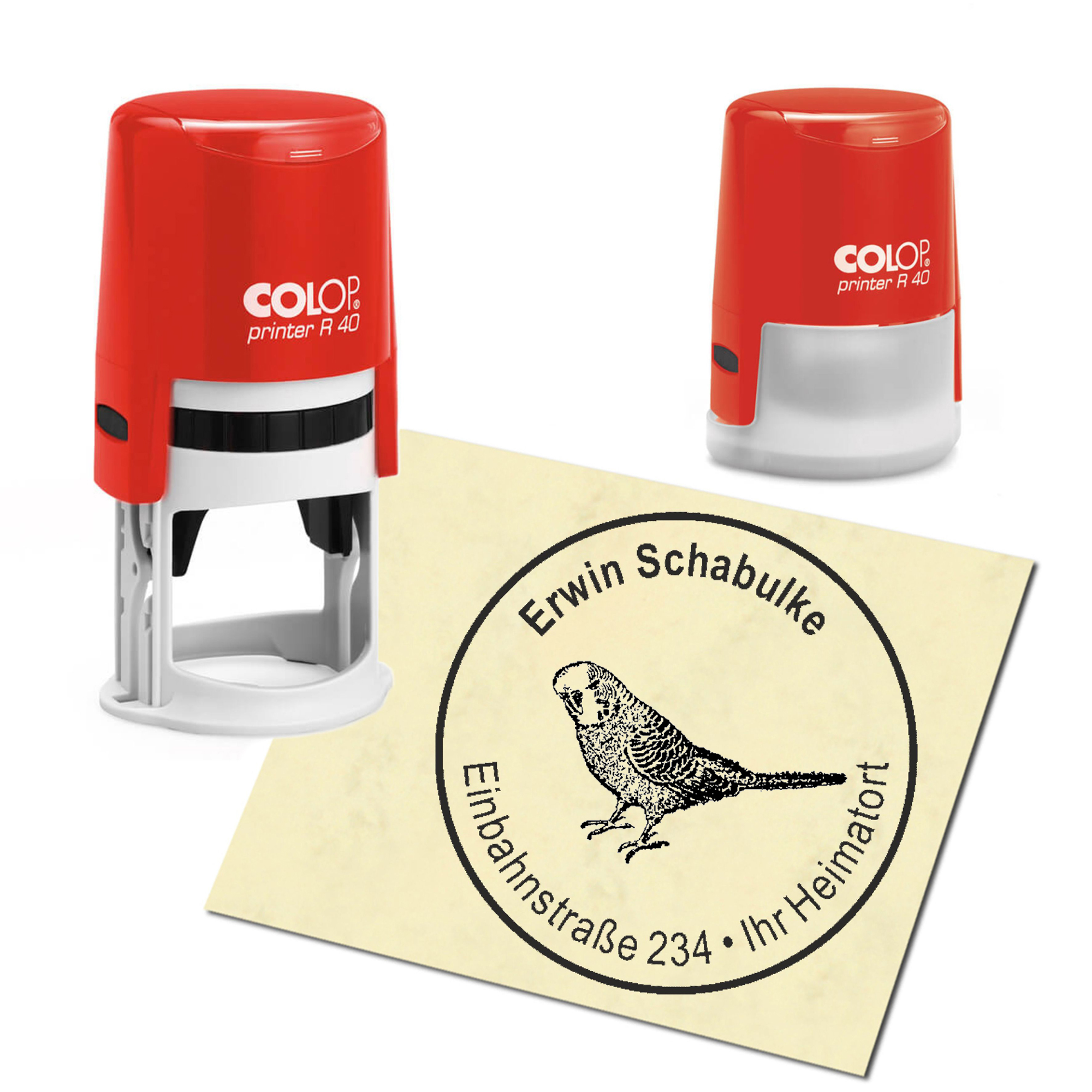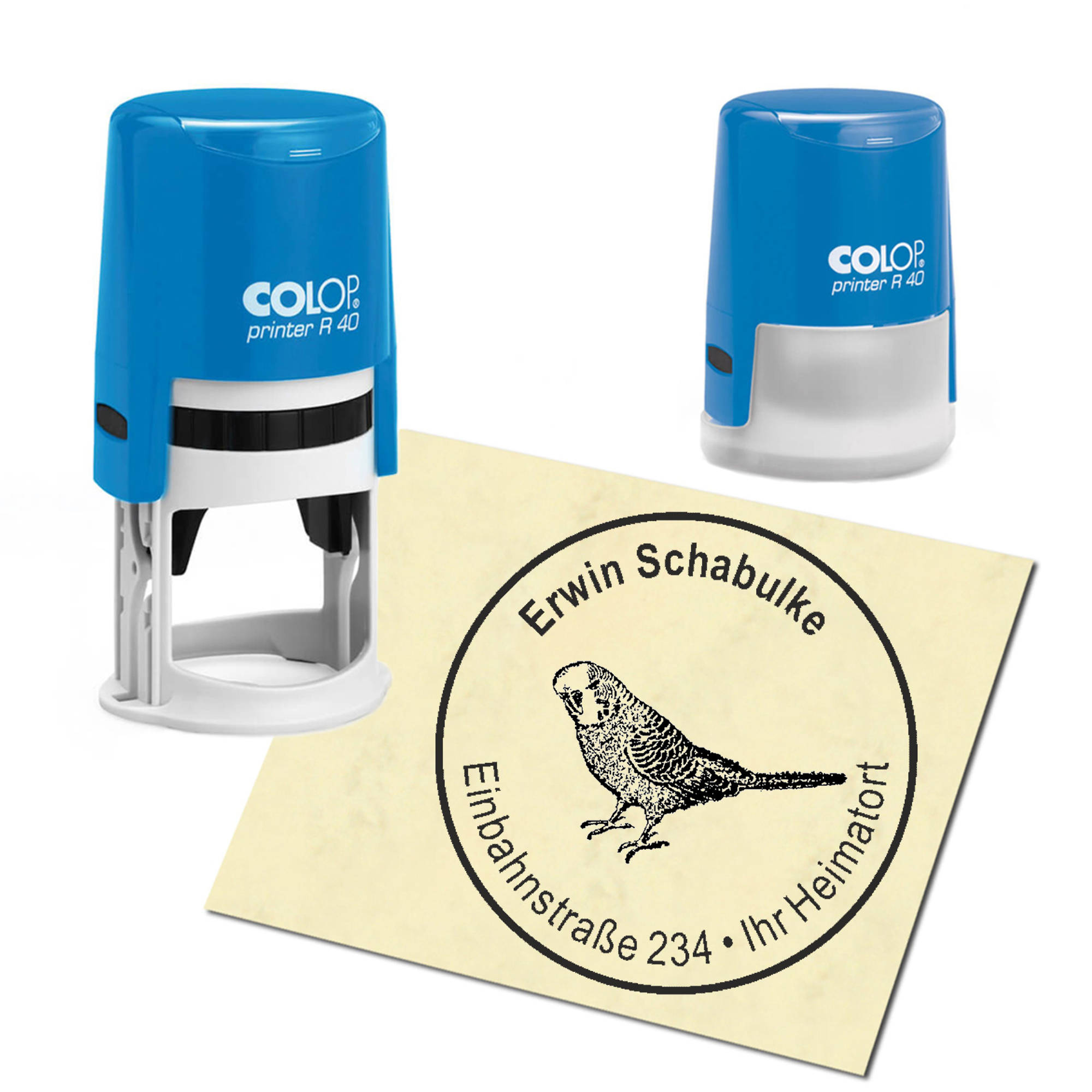 Stempel Adressstempel personalisiert - Wellensittich - rund ∅ 40mm