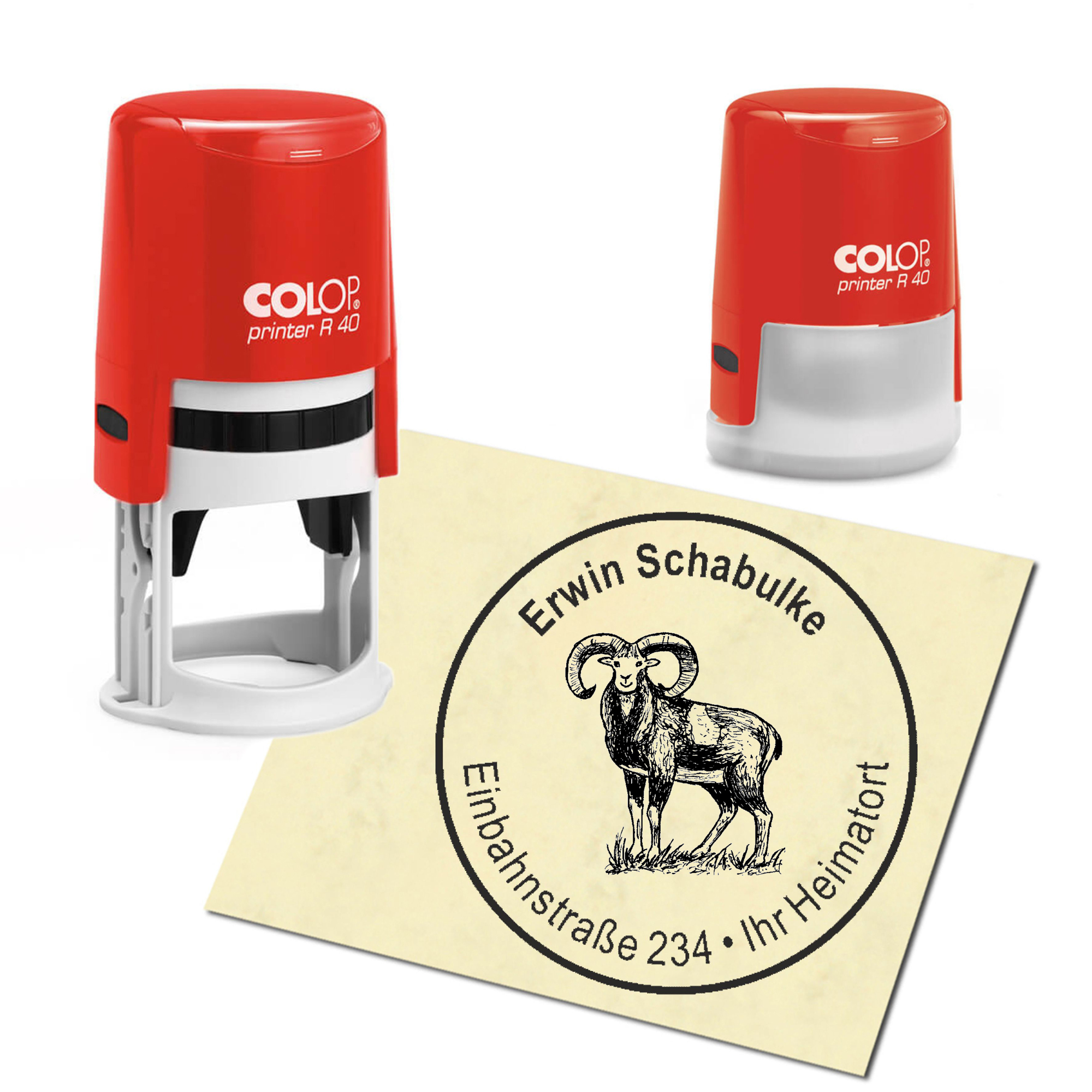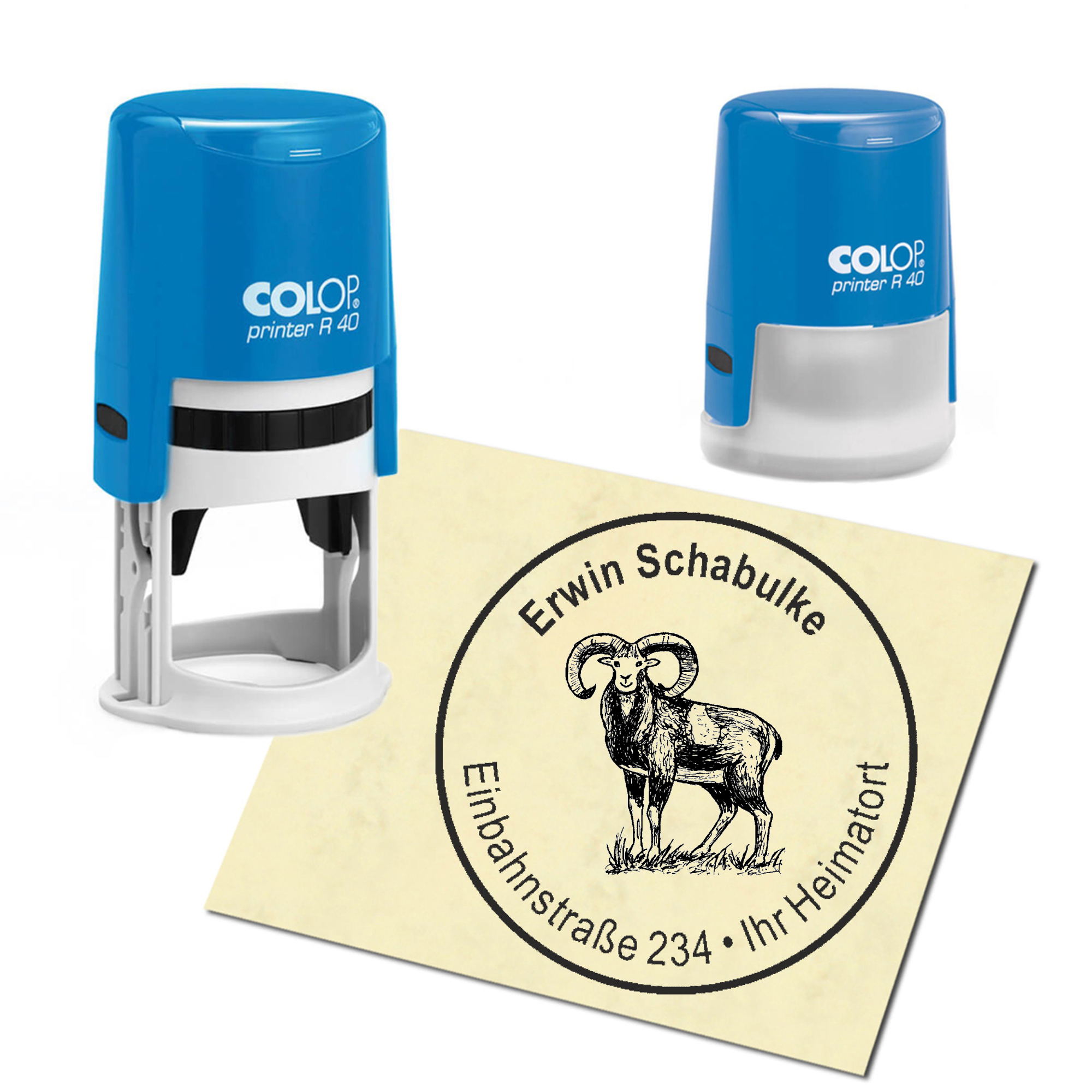 Produktinformationen "Stempel Adressstempel personalisiert - Widder - rund ∅ 40mm"