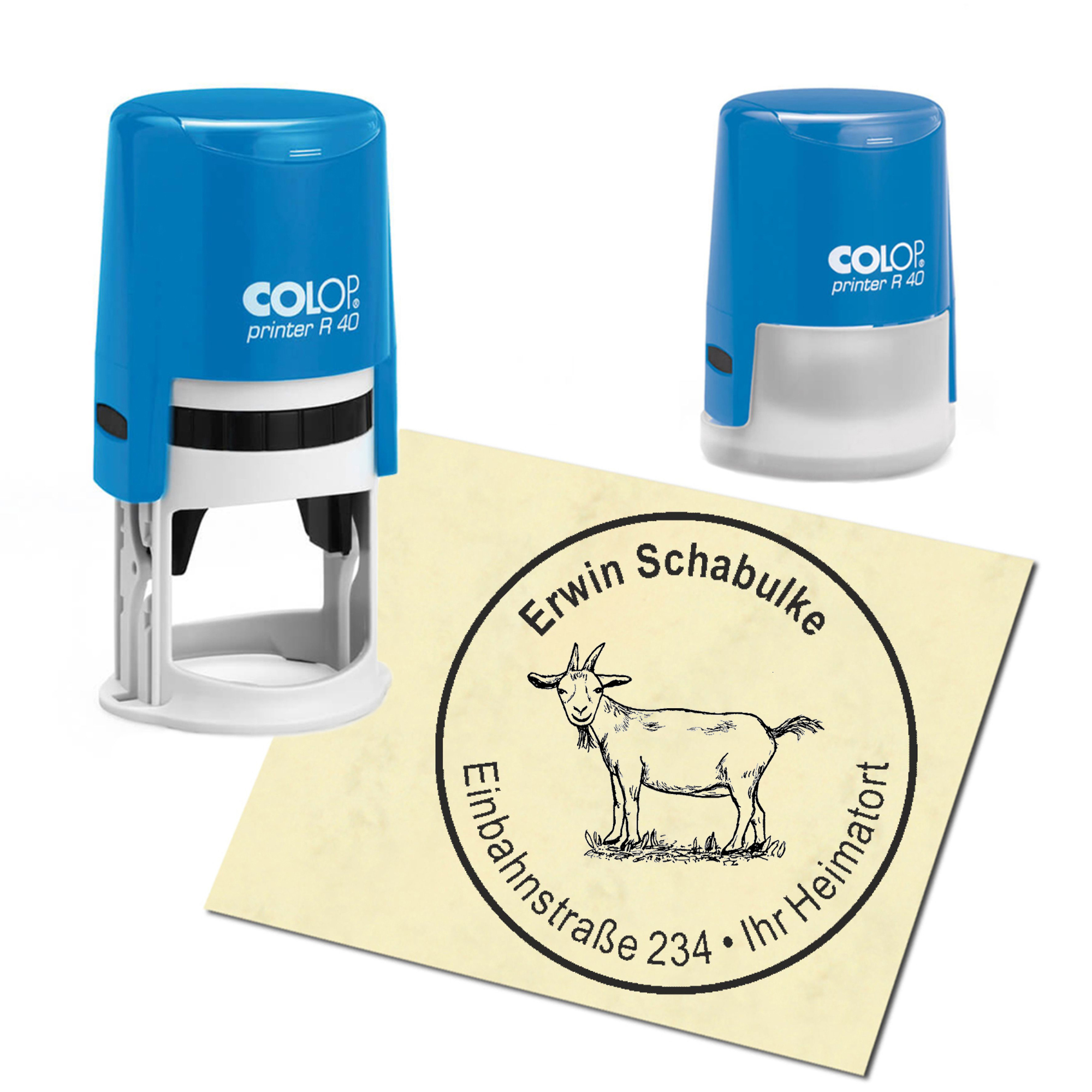 Stempel Adressstempel personalisiert - Ziege - rund ∅ 40mm
