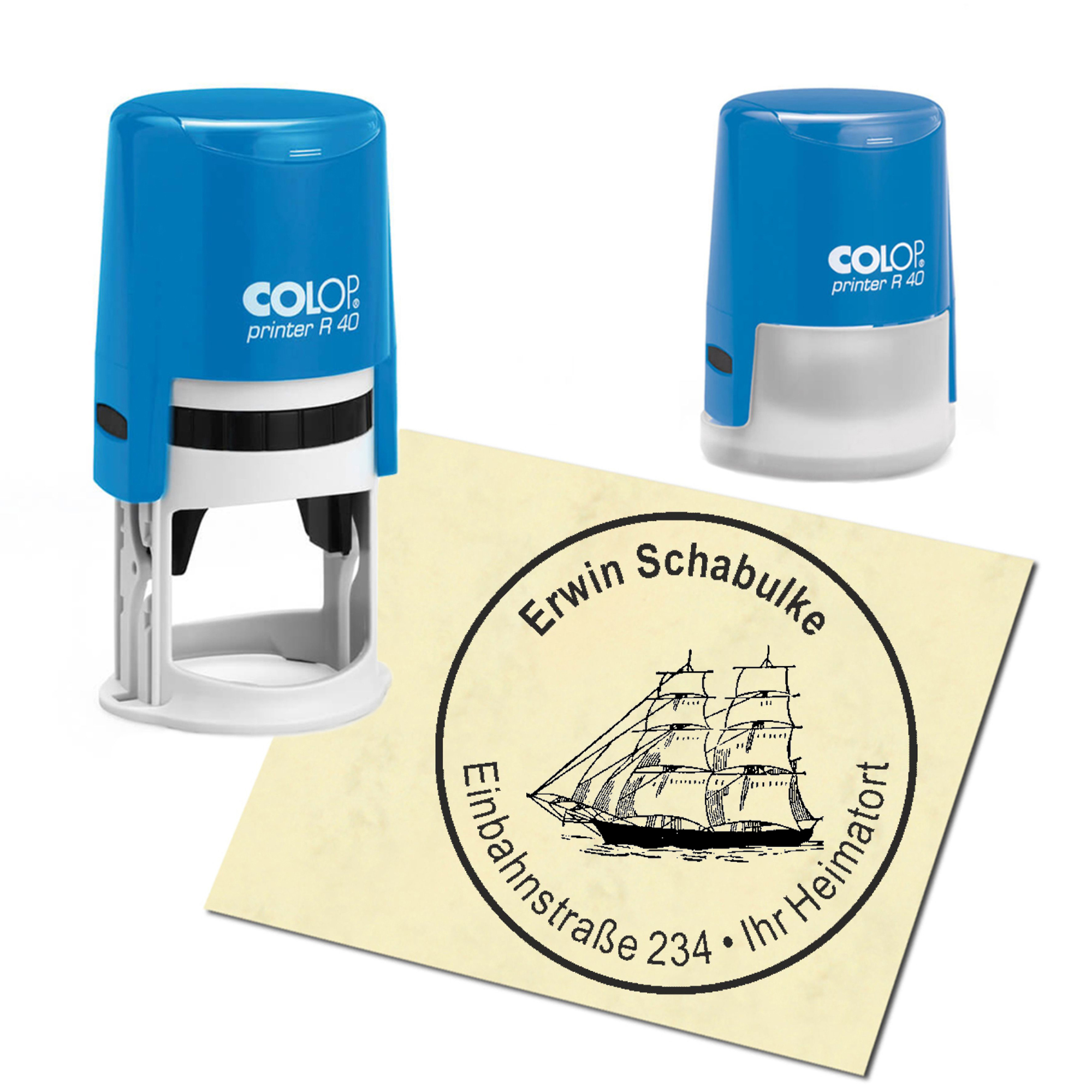 Produktinformationen "Stempel Adressstempel personalisiert - Zweimaster - rund ∅ 40mm"