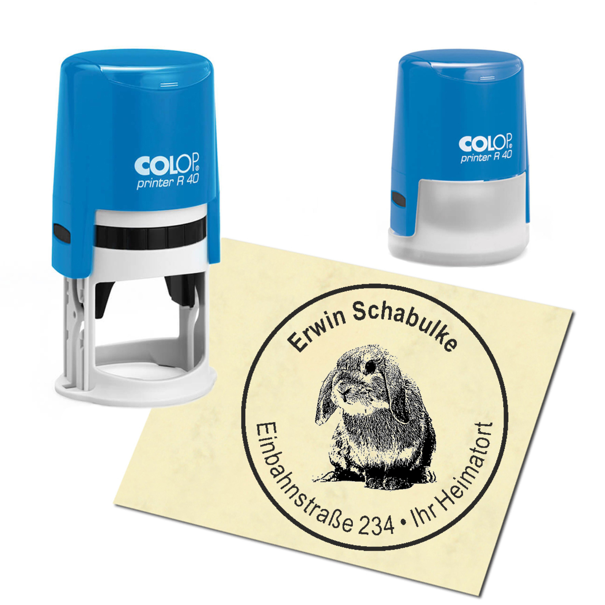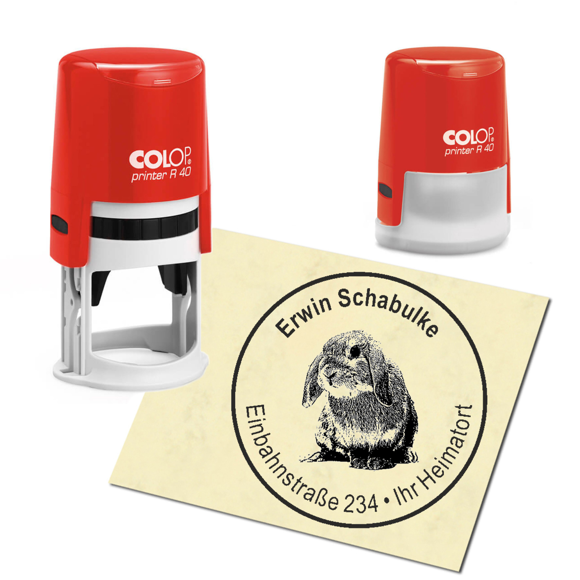 Produktinformationen "Stempel Adressstempel personalisiert - Zwergkaninchen - rund ∅ 40mm"