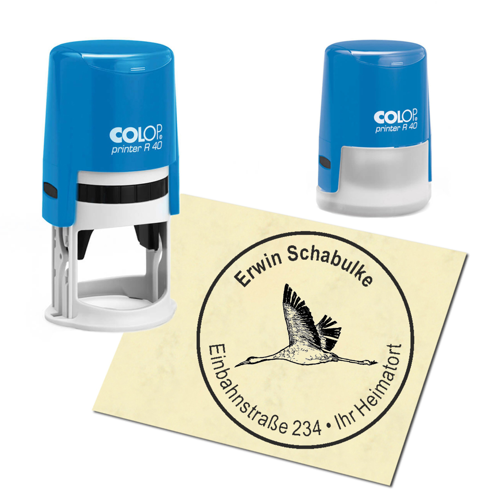 Stempel Adressstempel personalisiert - fliegender Kranich - rund ∅ 40mm