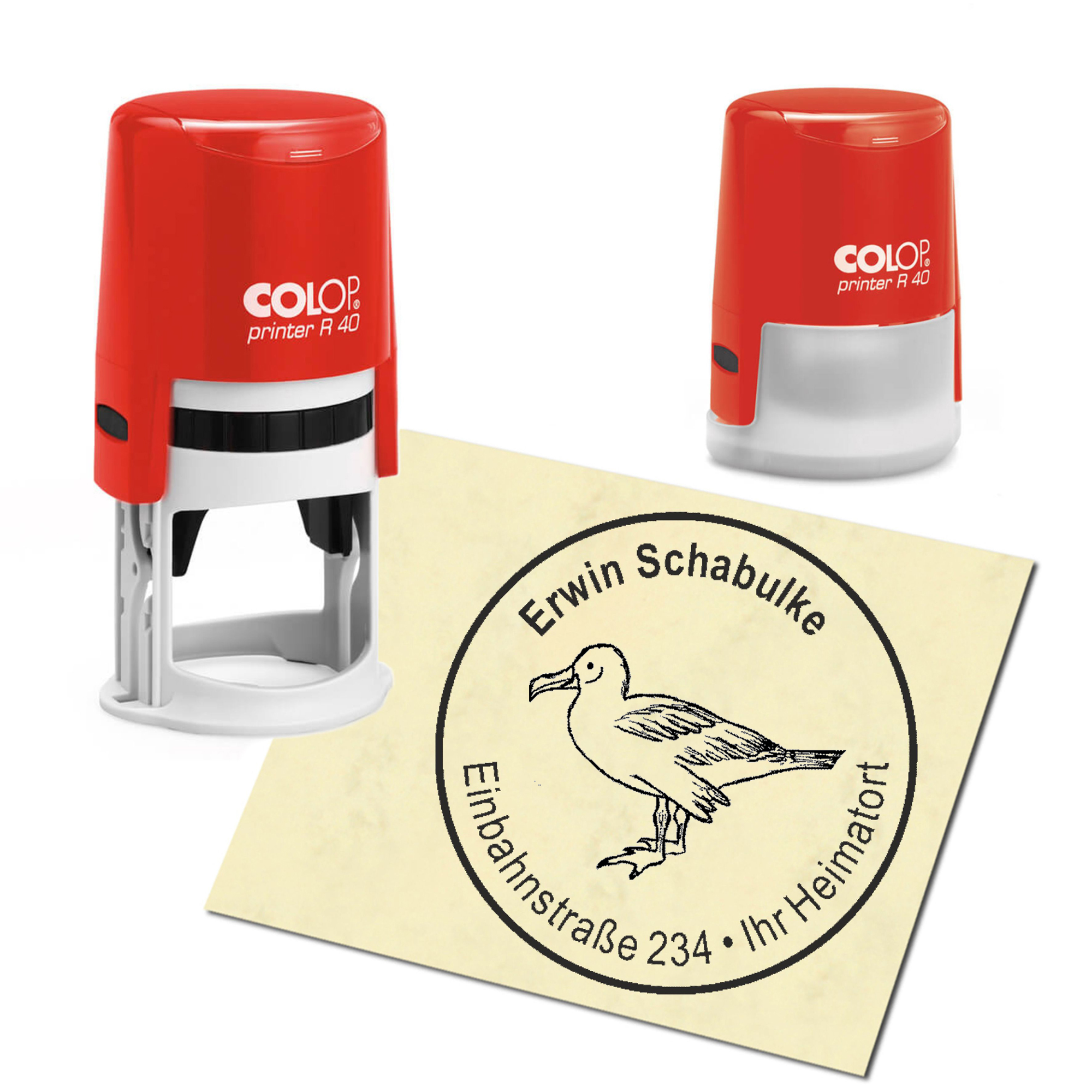Stempel Adressstempel personalisiert - gezeichneter Albertros - rund ∅ 40mm