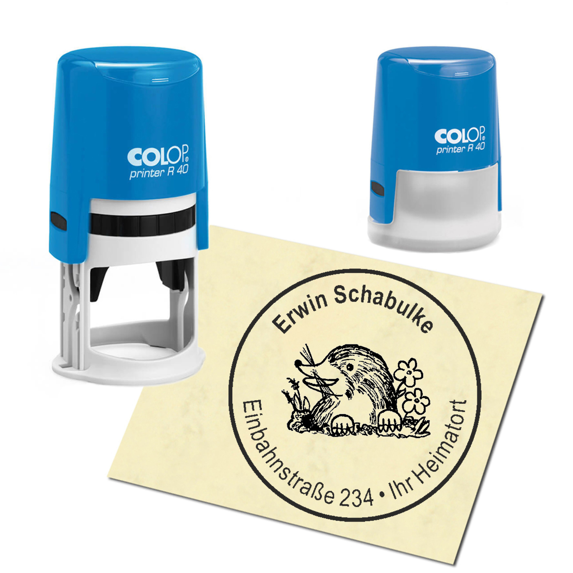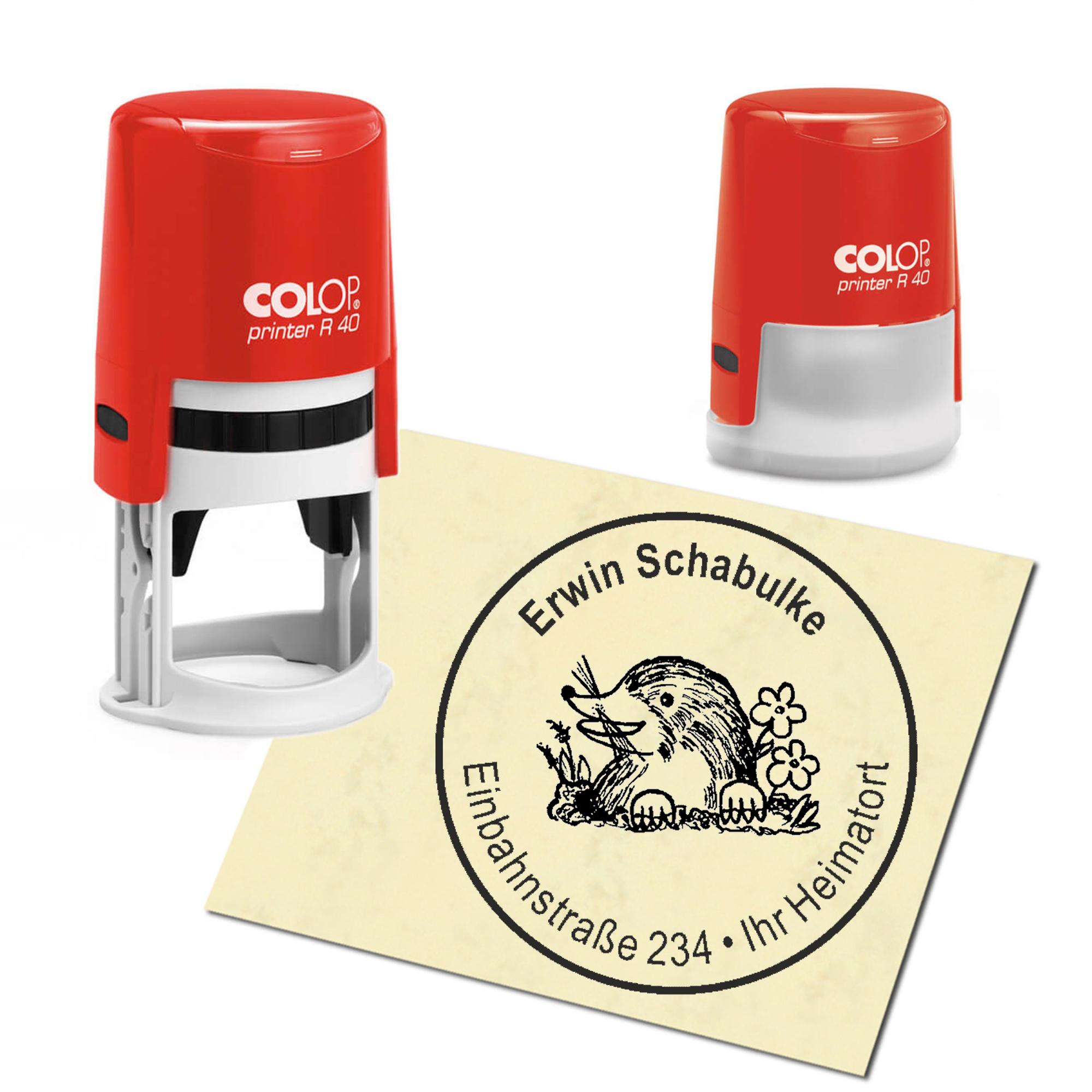 Produktinformationen "Stempel Adressstempel personalisiert - niedlicher Maulwurf - rund ∅ 40mm"