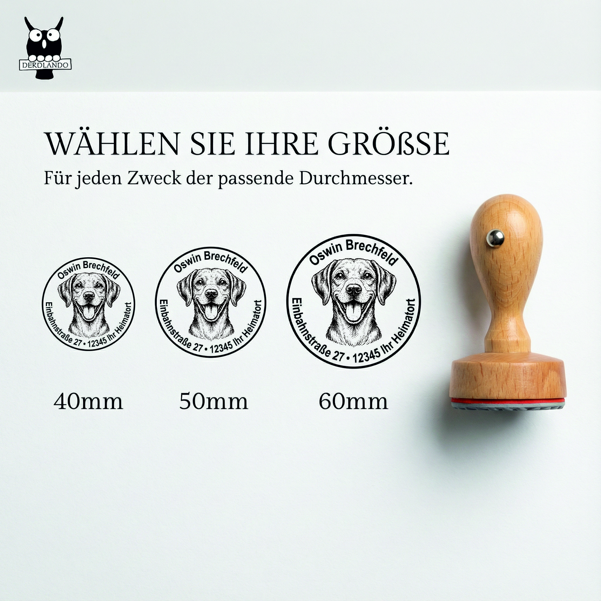 Stempel Vizsla personalisiert – Hund Holzstempel mit Name & Adresse